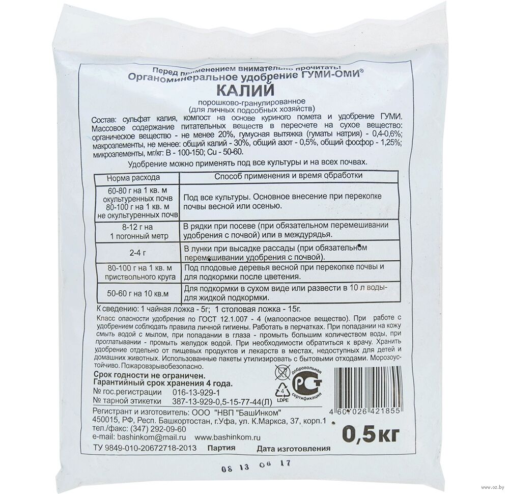Порошково-гранулированное удобрение с необходимыми для питания растений макро- и микроэлементами и эликсиром плодородия Гуми, с высоким содержанием калия. Повышает урожайность, плодородие, улучшает структуру почвы и улучшает качество продукции.