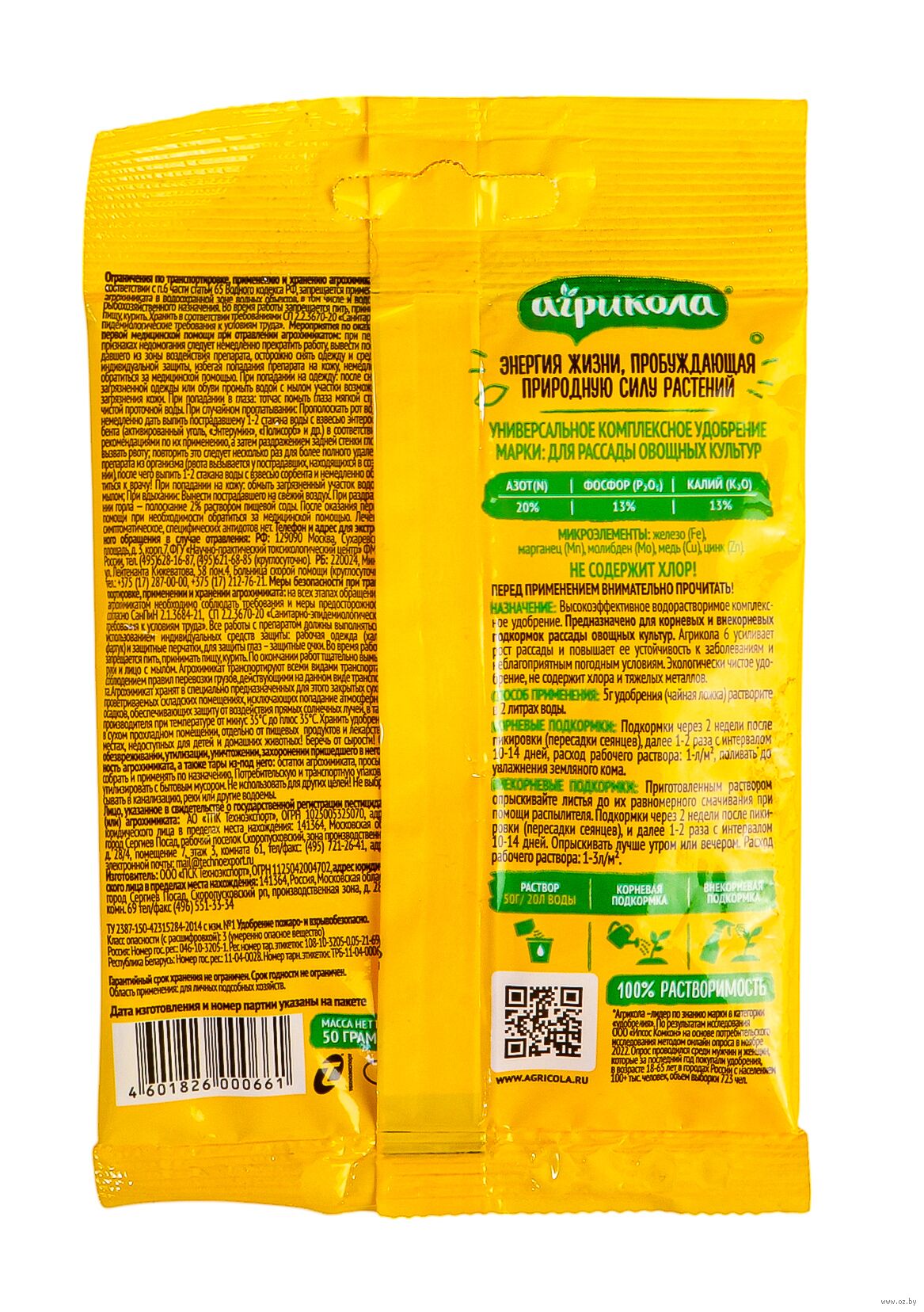 Удобрения включают полный сбалансированный набор макро- и микроэлементов, не содержат хлора и тяжелых металлов. Правильный состав, учитывающий потребности растения в тот или иной период роста, своевременные подкормки удобрениями Агрикола препятствуют образованию нитратов в растениях.