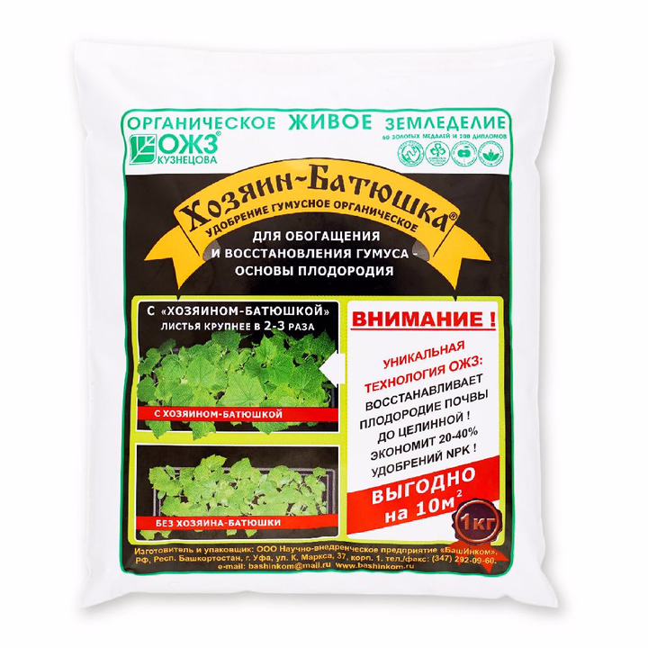 Природный гумусный препарат длительного (пролонгированного) действия. Для мощного повышения плодородия почвы и урожайности, увеличения гумусного слоя, улучшения структуры почвы, повышения эффективности питания растений, снижение нитратов и нейтрализации тяжелых металлов и др. вредных веществ, оздоровления почвы, активизации полезной почвенной микрофлоры и ликвидации усталости почвы.