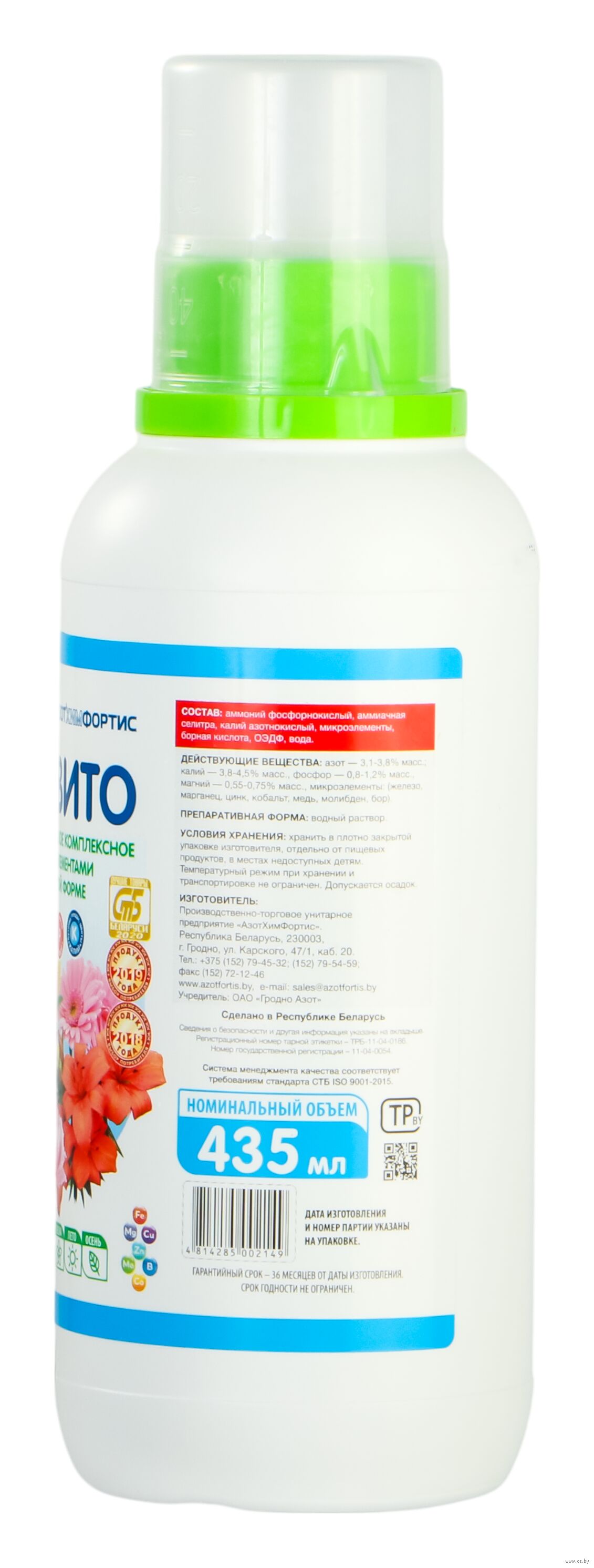 Серия жидких комплексных удобрений с микроэлементами предназначеных для подкормки комнатных растений, балконных цветов, хвойных культур, растений открытого грунта. Удобрение «Белвито» представляет собой водный раствор солей макро- и микроэлементов, взятых в оптимальных соотношениях.