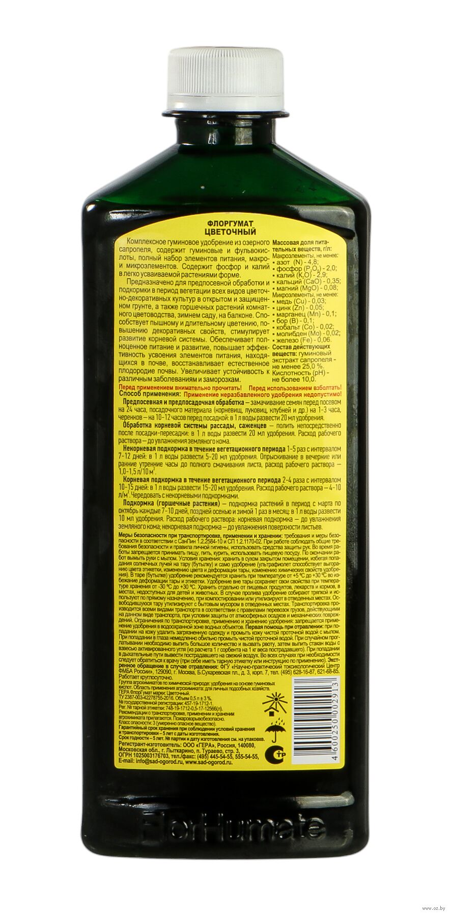 Комплексное удобрение на основе солей гуминовых кислот, содержит полный набор элементов питания и микроэлементов. Позволяет вырастить экологически чистую продукцию, восстанавливает естественное плодородие почвы. Увеличивает эффективность усвоения элементов питания. Предназначено для предпосевной обработки и подкормки всех видов комнатных и садово-парковых растений. Способствует пышному и длительному цветению, повышению декоративных свойств, стимулирует развитие корневой системы.