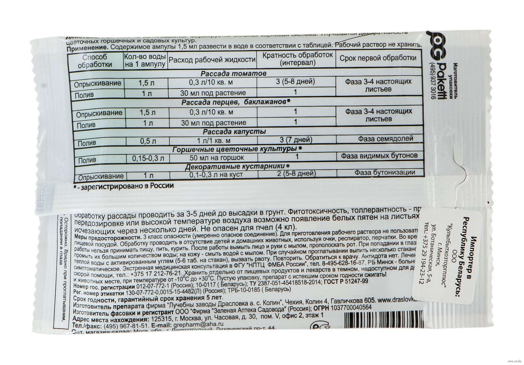 | Изготовитель | ООО "Зеленая Аптека Садовода". Россия, Московская область, г. Долгопрудный, Лихачевский проспект, д. 44 |