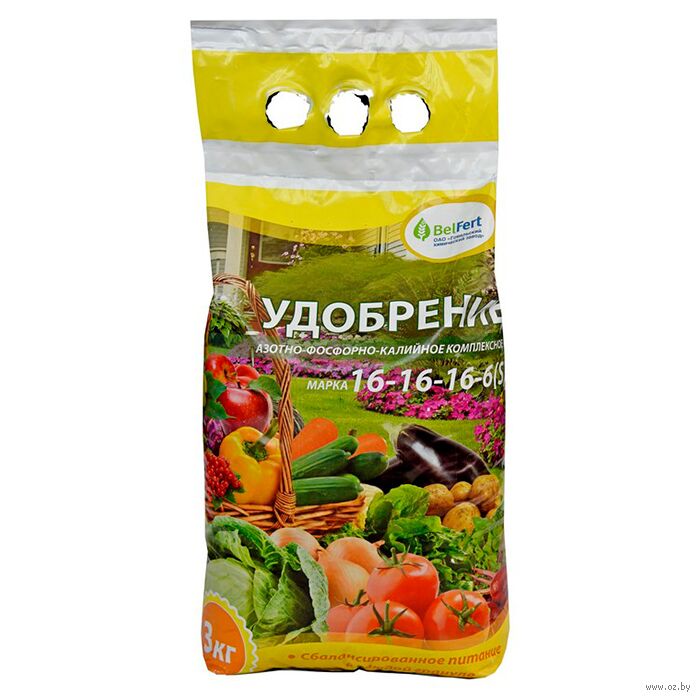 Универсальное сложное азотно-фосфорно-калийное удобрение. Содержит в своем составе три основных элемента питания растений в оптимальной для них пропорции.