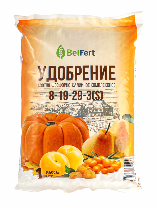 Удобрение азотно-фосфорно-калийное "АФК 8-19-29" – комплексное универсальное удобрение с высоким содержанием калия и фосфора и низким содержанием азота, хорошо подходящее для основного внесения осенью. Имеет особую ценность для культур, требующих высокого содержания фосфора и калия в почве. Подходит под все сельскохозяйственные культуры.