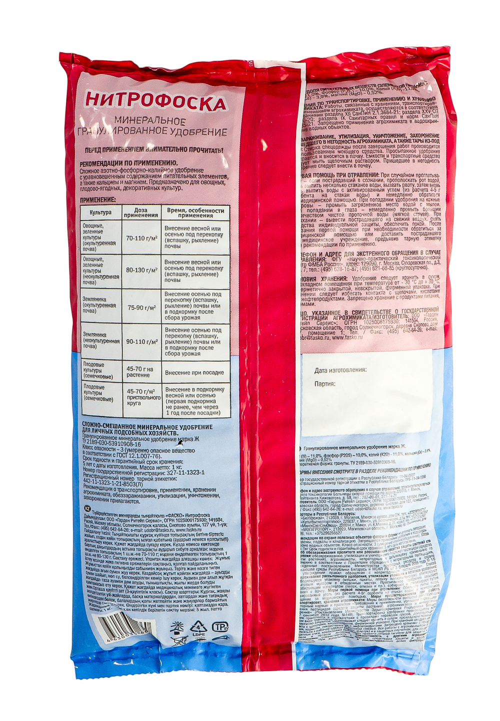 Азот общий – 11; Фосфор – 10; Калий – 11.Способ применения