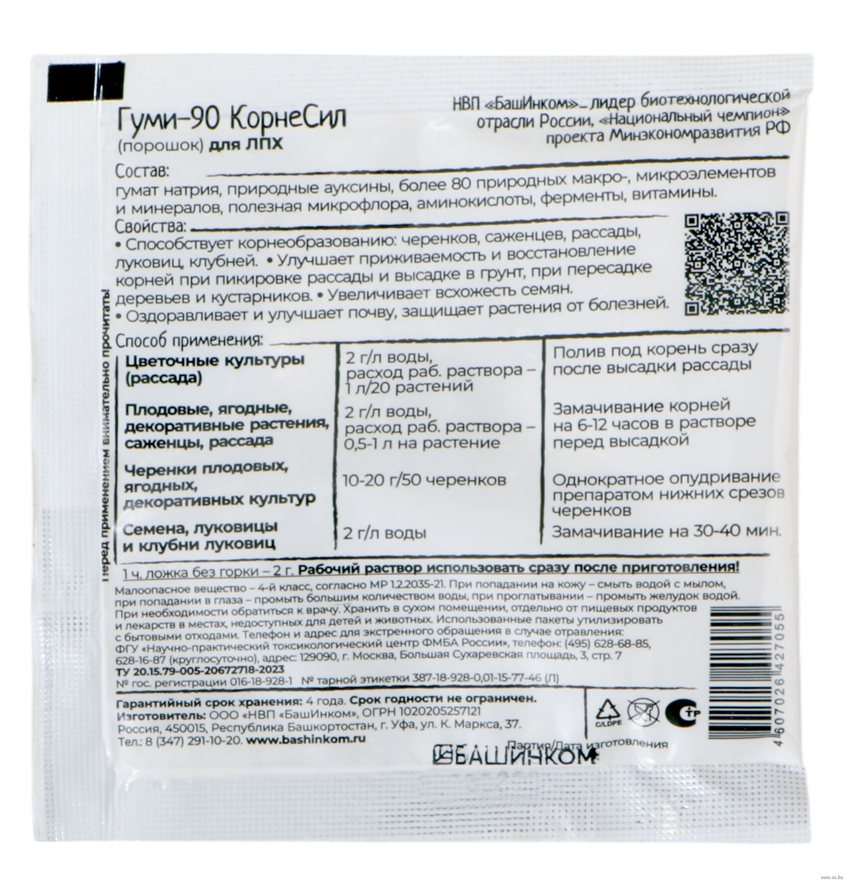 | Свойства | Стимулирует корнеобразование, укрепляет корневую систему, улучшает приживаемость при пересадке |