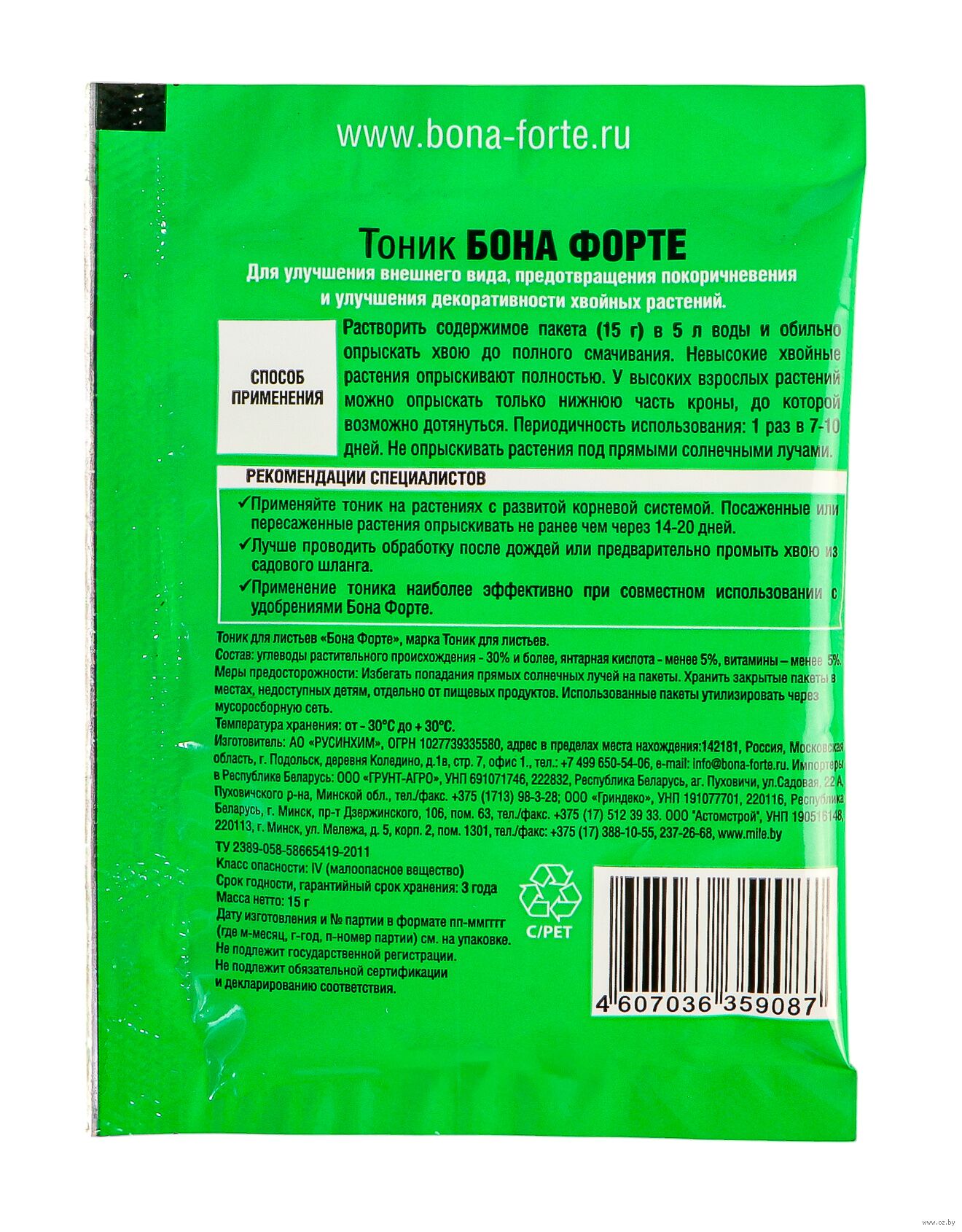 Растворить содержимое пакета (15 г) в 5 л воды и обильно опрыскать хвою до полного смачивания. Невысокие хвойные растения опрыскивают полностью. У высоких взрослых растений можно опрыскать только нижнюю часть кроны, до которой возможно дотянуться. Периодичность использования: 1 раз в 7-10 дней. Не опрыскивать растения под прямыми солнечными лучами.Мы используем файлы cookie для обеспечения удобства работы с сайтом и его контакта с пользователем.