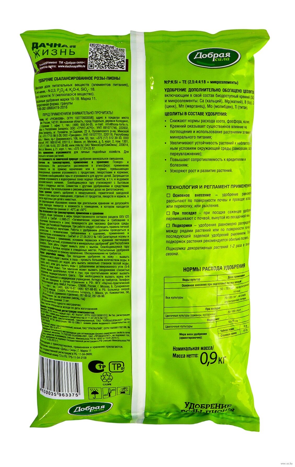 Удобрение обогащено цеолитами, содержащими биодоступный кремний. Доля цеолитов в составе удобрения – до 70%, что обеспечивает сильный стимулирующий эффект, защищает растения от вредного воздействия окружающей среды, увеличивает длительность цветения.
