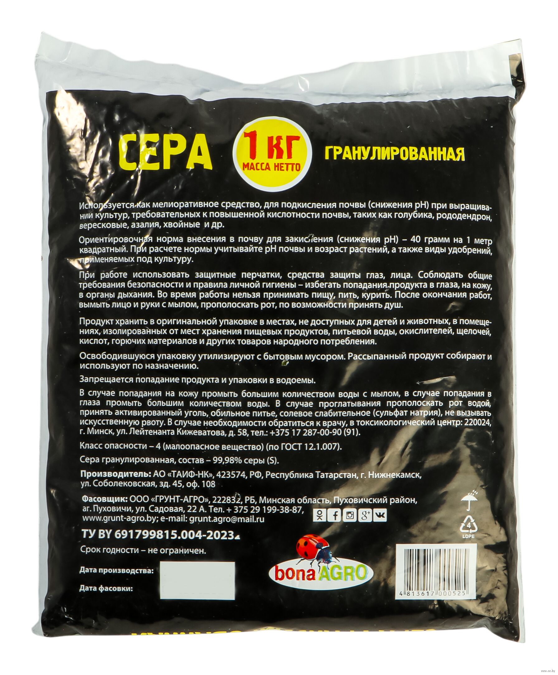 | Изготовитель | ООО "Грунт-Агро" ,Минская обл., Пуховичский р-н, дер. Подбережье |