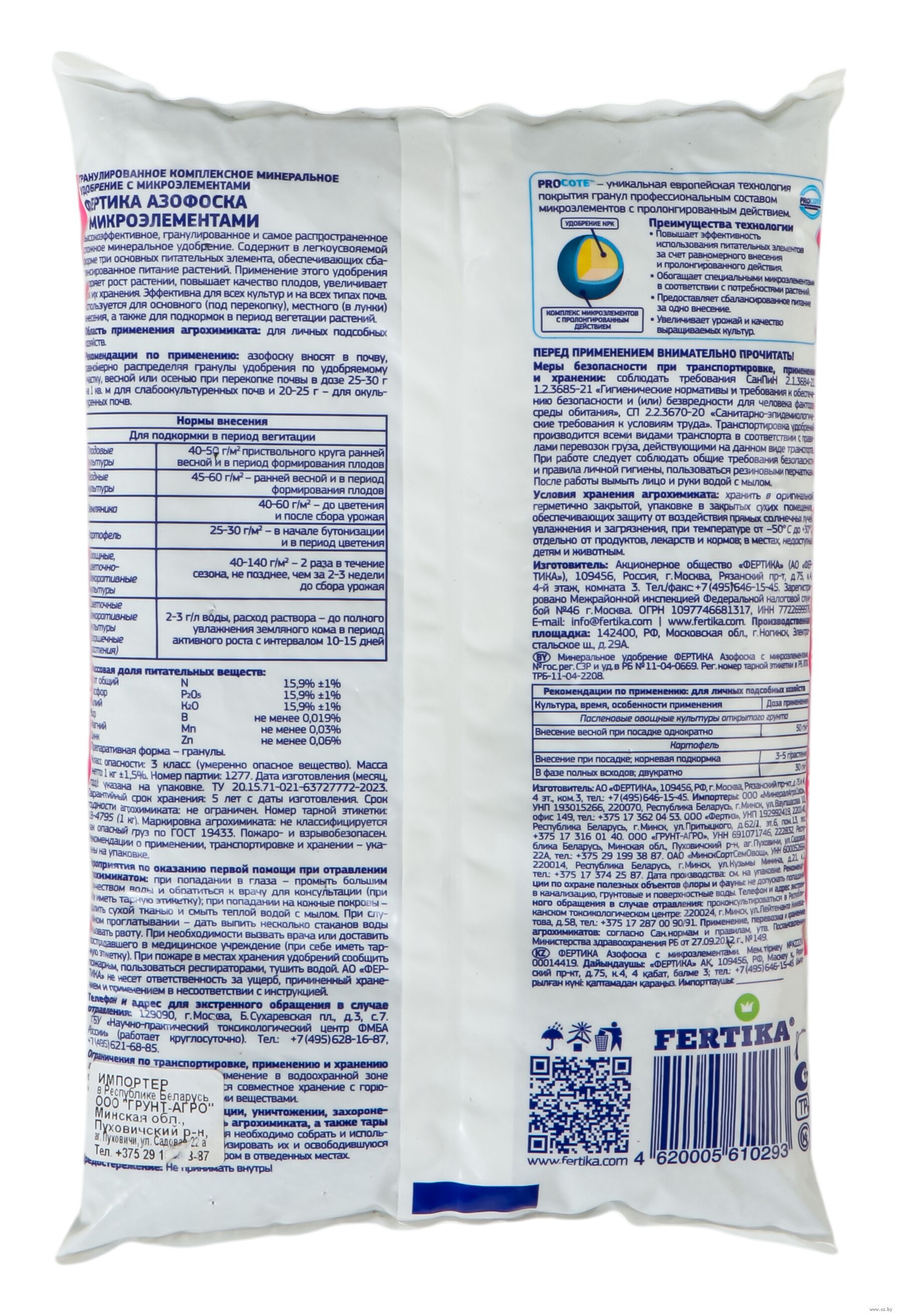 Универсальное сложное азотно-фосфорно-калийное удобрение. В состав удобрения входят три основных элемента питания растений в оптимальной для них пропорции.