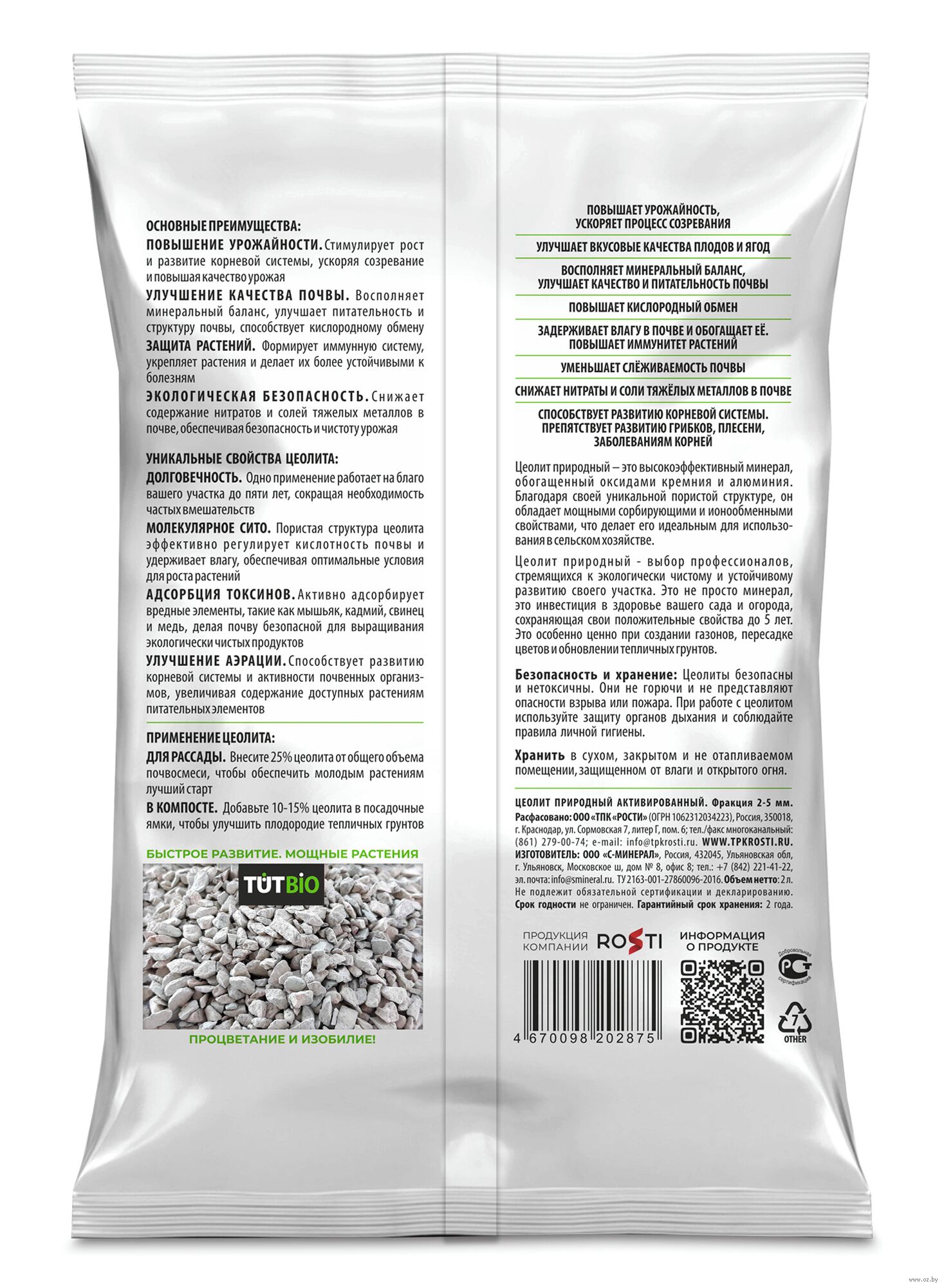 Регулирование кислотности: цеолит способствует нормализации pH почвы, создавая благоприятную среду для развития корневой системы.