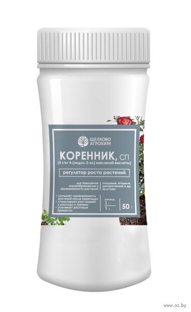 Коренник – регулятор роста, предназначенный для стимулирования корнеобразования, усиления роста растения, лучшей приживаемости черенков, саженцев, рассады цветочных и декоративных культур, а также улучшения их декоративных качеств.