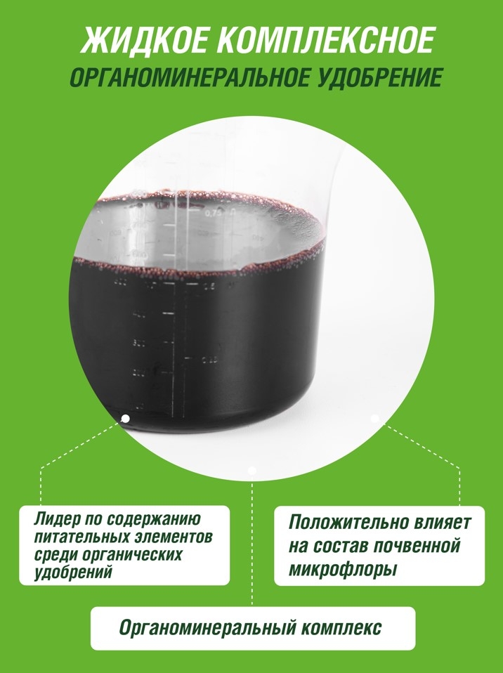 Конский компост представляет собой органоминеральный комплекс, в котором конский навоз сочетается с минеральными элементами питания в результате чего эффективность проводимых подкормок значительно увеличивается. При этом, использование компоста в жидкой форме позволяет равномерно вносить в почву удобрение и оперативно доставить его в корневую зону растения, сокращая время между использованием удобрения и его непосредственным эффектом.