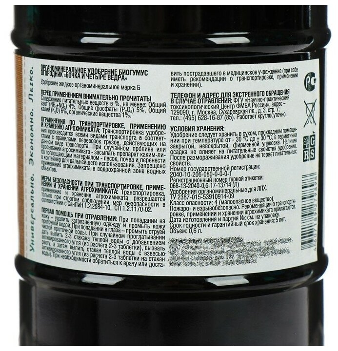 Универсальное жидкое комплексное удобрение "Бочка и четыре ведра". Это органоминеральное удобрение для любых культур: овощные, плодовые, ягодные, комнатные и декоративно-цветочные.
