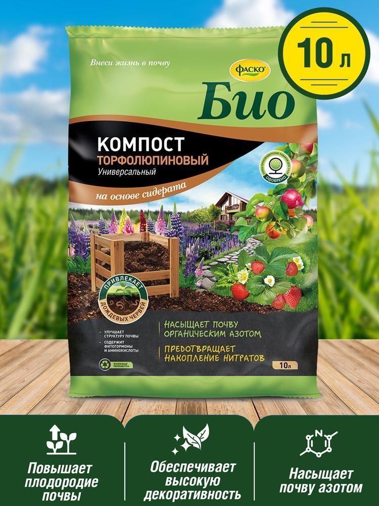 Торфолюпиновый компост – продукт переработки полностью органических природных компонентов: торфа и зеленого удобрения – люпина.