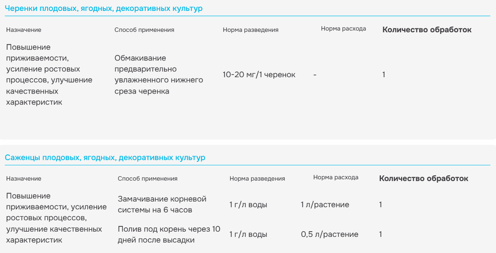 | Свойства | Стимулирует корнеобразование, укрепляет корневую систему, улучшает приживаемость при пересадке |