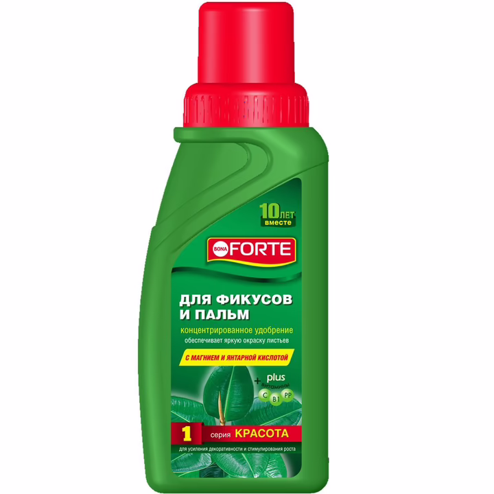 Специальный состав удобрений придаёт сочную зелень листьям, стимулирует рост побегов и защищает иммунитет.