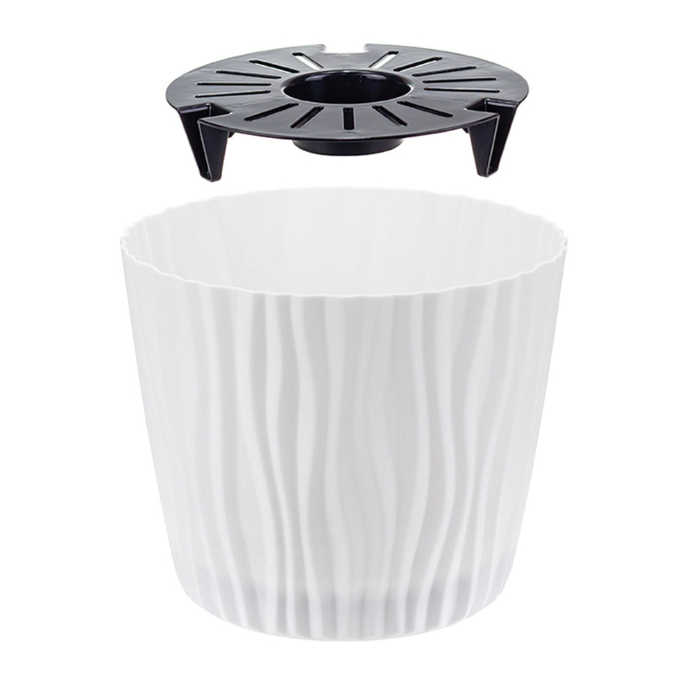 Горшок укомплектован вкладышем для регулировки в нём воды. Между горшком и вкладышем есть пространство для воды, которая используется растениями при необходимости. Преимущества вкладыша: не нужен поддон, нет необходимости часто поливать цветы, корешки не подвергаются гниению.