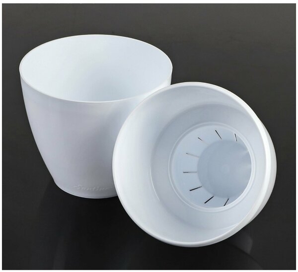 Горшок цветочный "Деко Твин" снабжен дренажной системой и состоит из кашпо с окошком контроля уровня воды и вазона-вкладыша. Изготовлен из пластика.