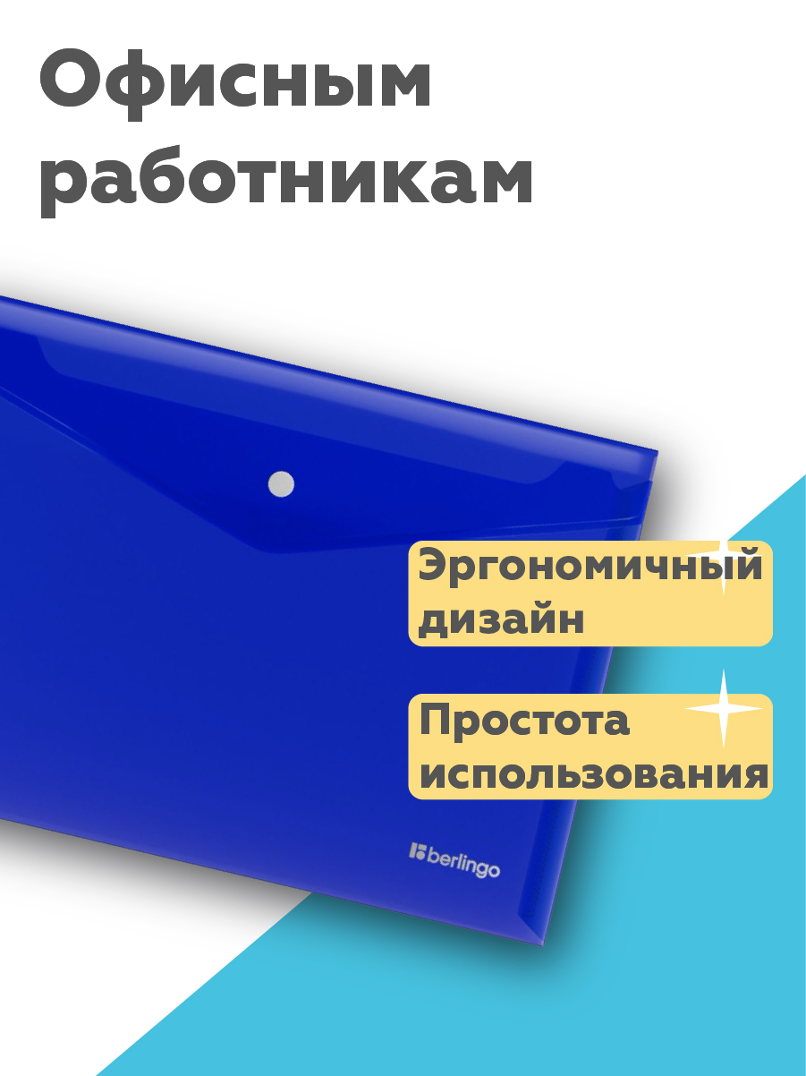 Папка-конверт пластиковая на кнопке повышенной прочности, благодаря увеличенной до 200 мкм толщине конверта.