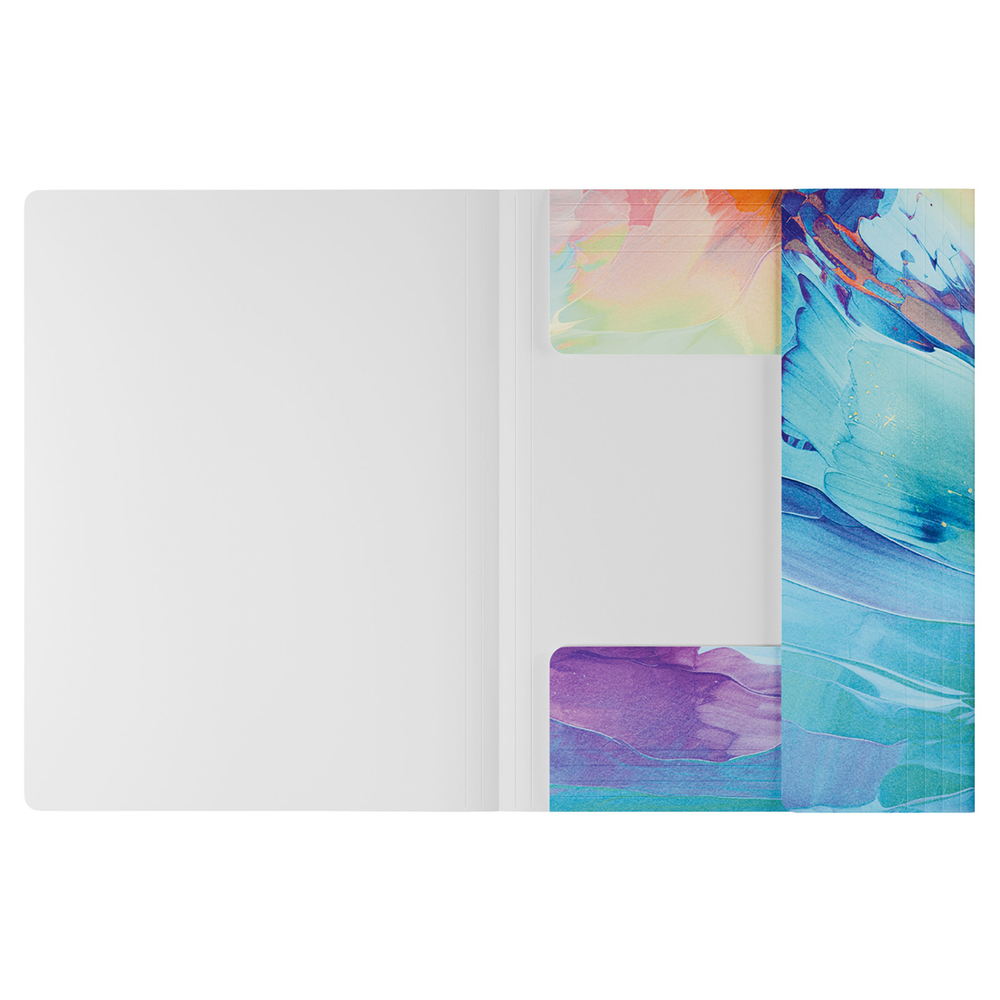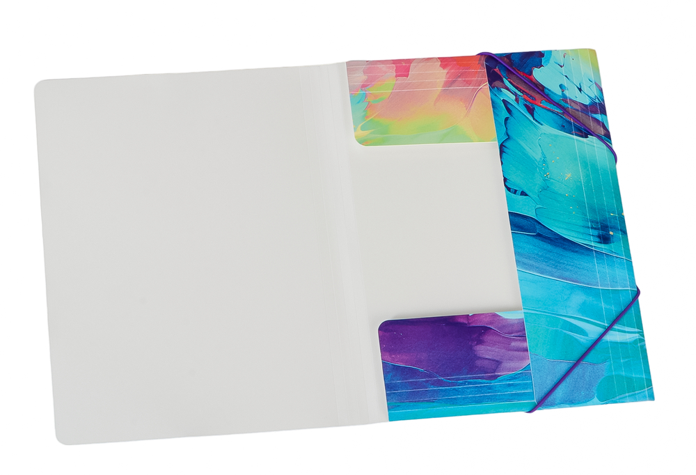 Креативный дизайн поможет сделать яркий акцент в оформлении рабочего пространства. Внутренняя поверхность выполнена в белом цвете. Надёжные застёжки-резинки помогают избежать повреждения документов и легко открываются.