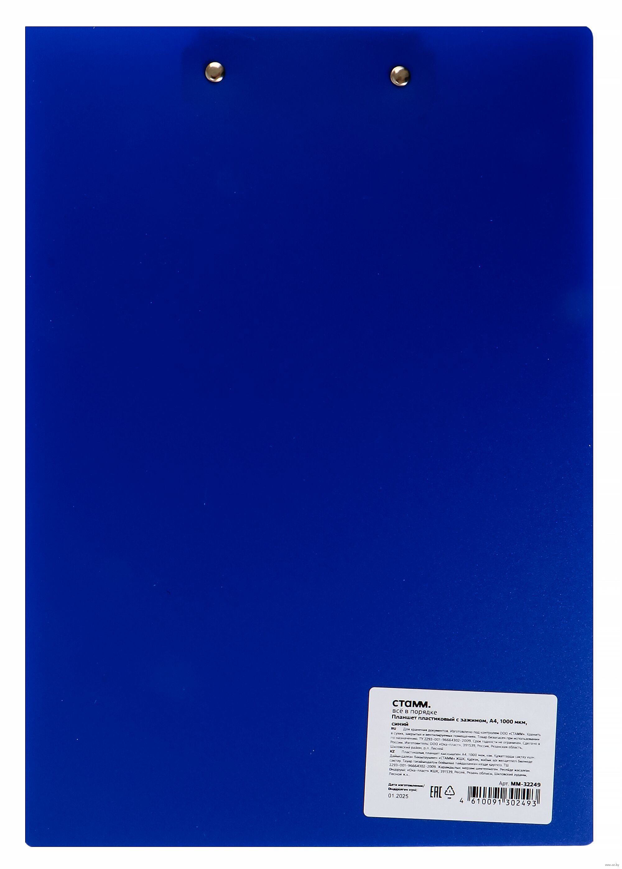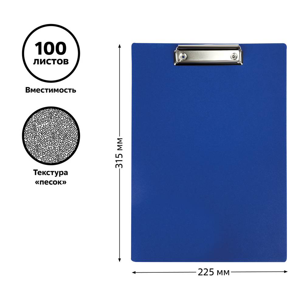 Планшет с зажимом формата А4 предназначен для хранения документов. Планшет синего цвета вмещает до 100 листов.