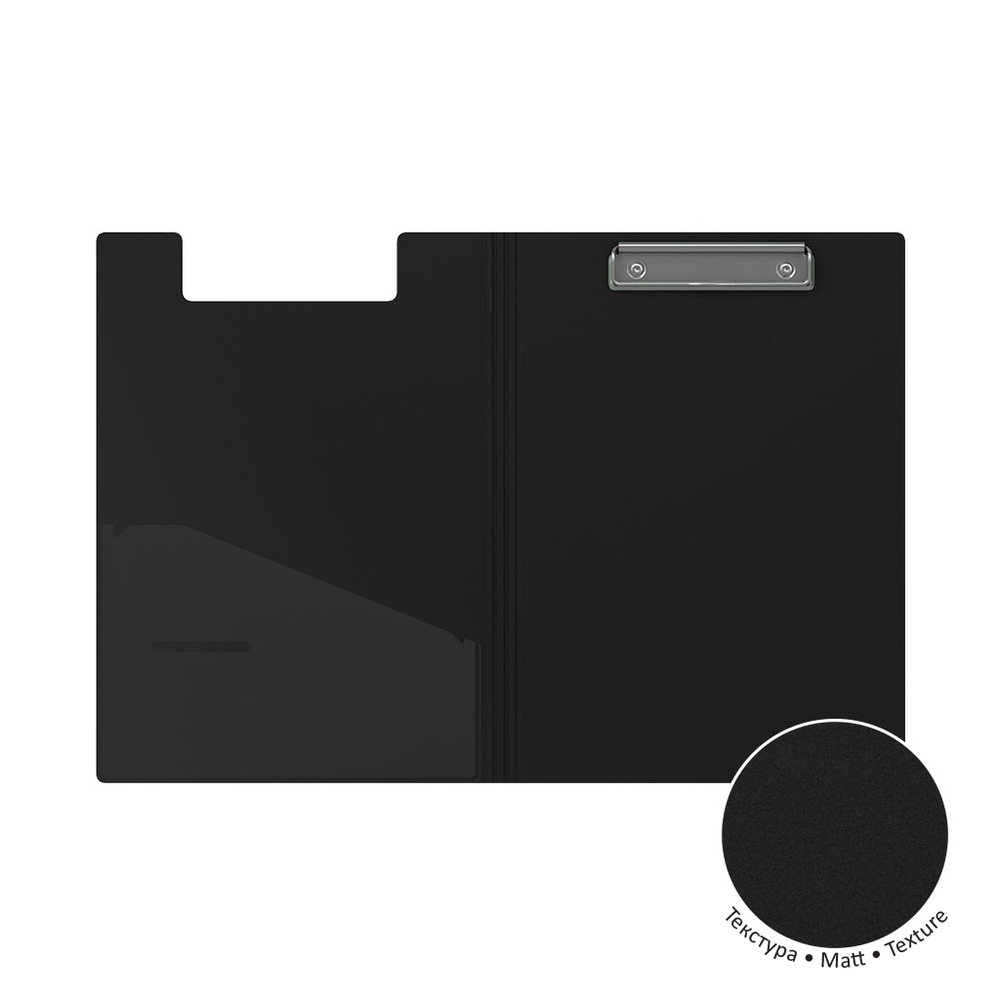 Папка-планшет формата А4 из высококачественного пластика с надежным прижимным механизмом и текстурой поверхности "песок", на которой не видно отпечатков пальцев и мелких царапин.