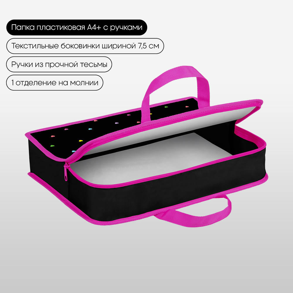Школьная папка c ручками и одним отделением поможет поддерживать аккуратный внешний вид тетрадей, альбомов и учебных пособий. Формат изделия – А4 (340*245*75 мм). Папка изготовлена из высококачественного пластика, который защищает содержимое от влаги, грязи и замятия. Края укреплены контрастной тканевой окантовкой. Застёжка-молния расположена по верхнему краю изделия. Наличие ручек из тесьмы обеспечивает удобную транспортировку. Оформление изделия обязательно понравится ребёнку.