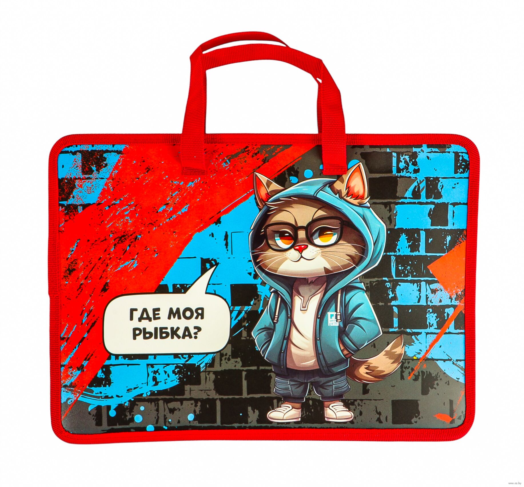 Формат изделия – А4 (340х245х70 мм). Папка изготовлена из качественного пластика, который защищает содержимое от влаги, грязи и замятия. Края укреплены тканевой окантовкой. Застёжка-молния расположена по верхнему краю изделия. Ручки сделаны из тесьмы, поэтому отличаются прочностью и не порвутся в неподходящий момент.