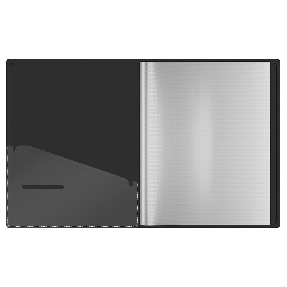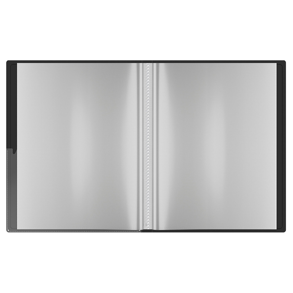 Папка формата А4 содержит 60 вкладышей, которые надёжно защищают листы от повреждений. Листы-карманы увеличенной толщины 30мкм надежно скреплены сваркой.