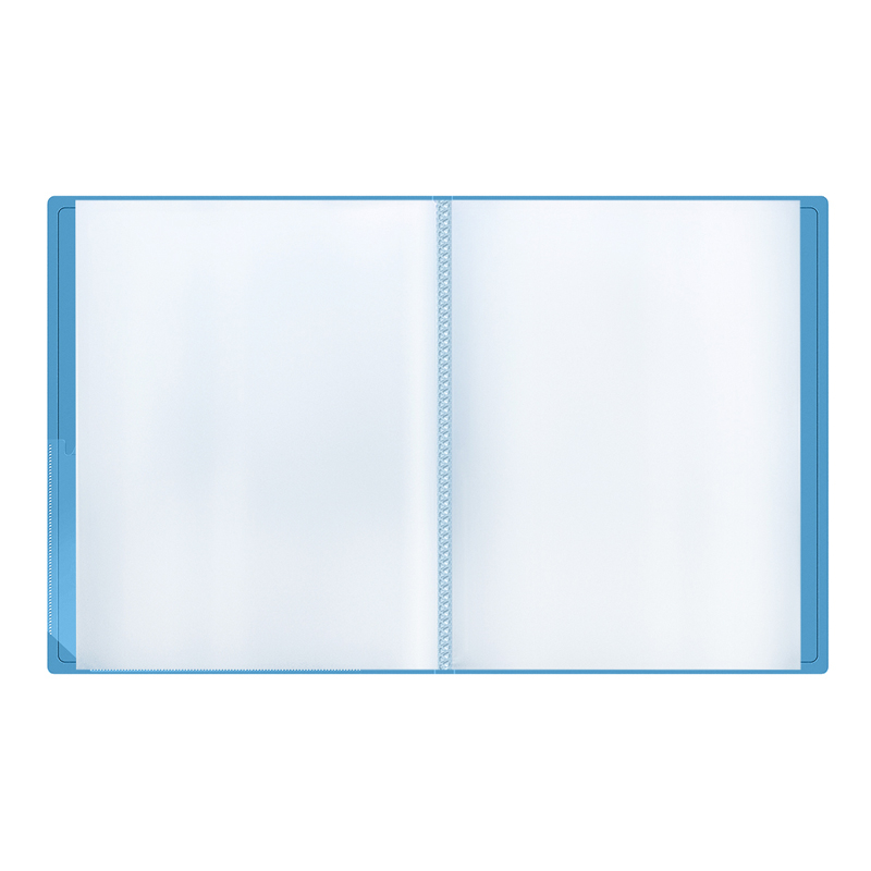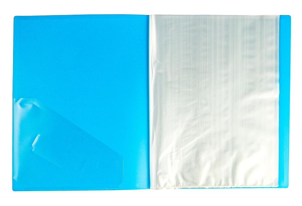 Папка выполнена в размере 305х235х14 мм. Папка имеет прозрачные листы-карманы для хранения документов без перфорации, требующих упорядоченности и наглядного обзора.