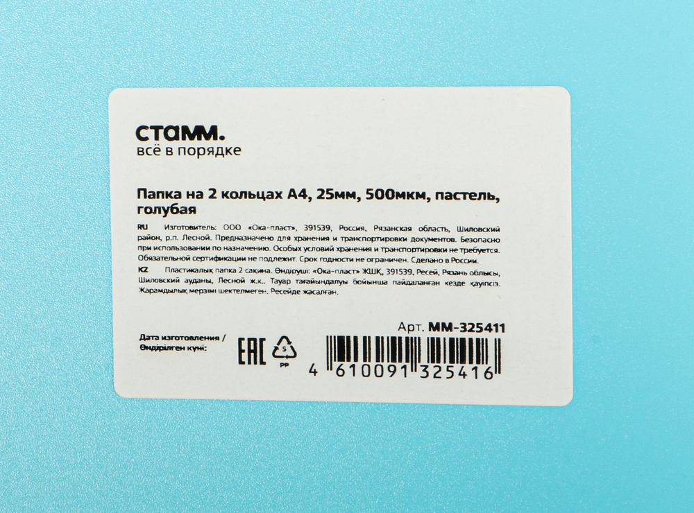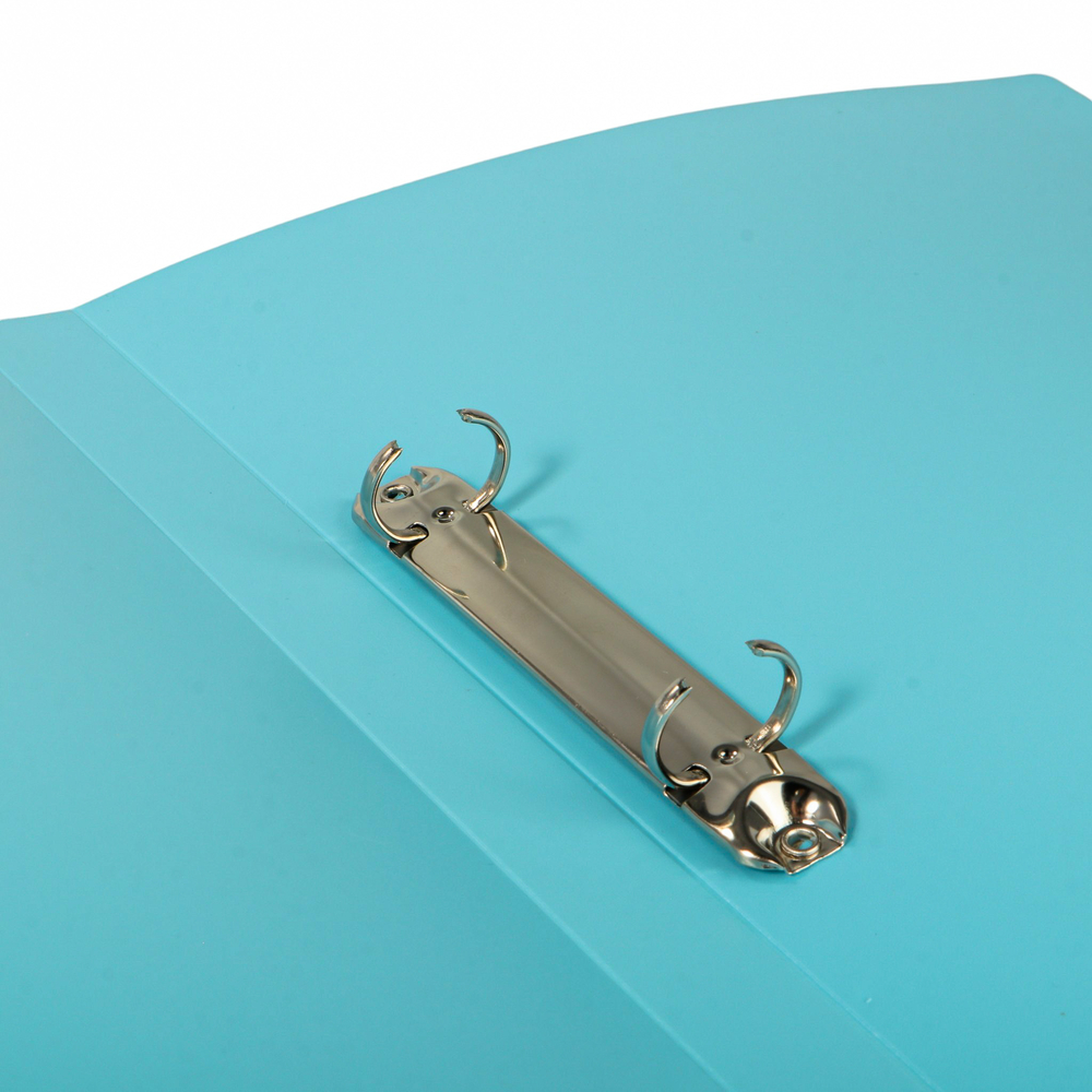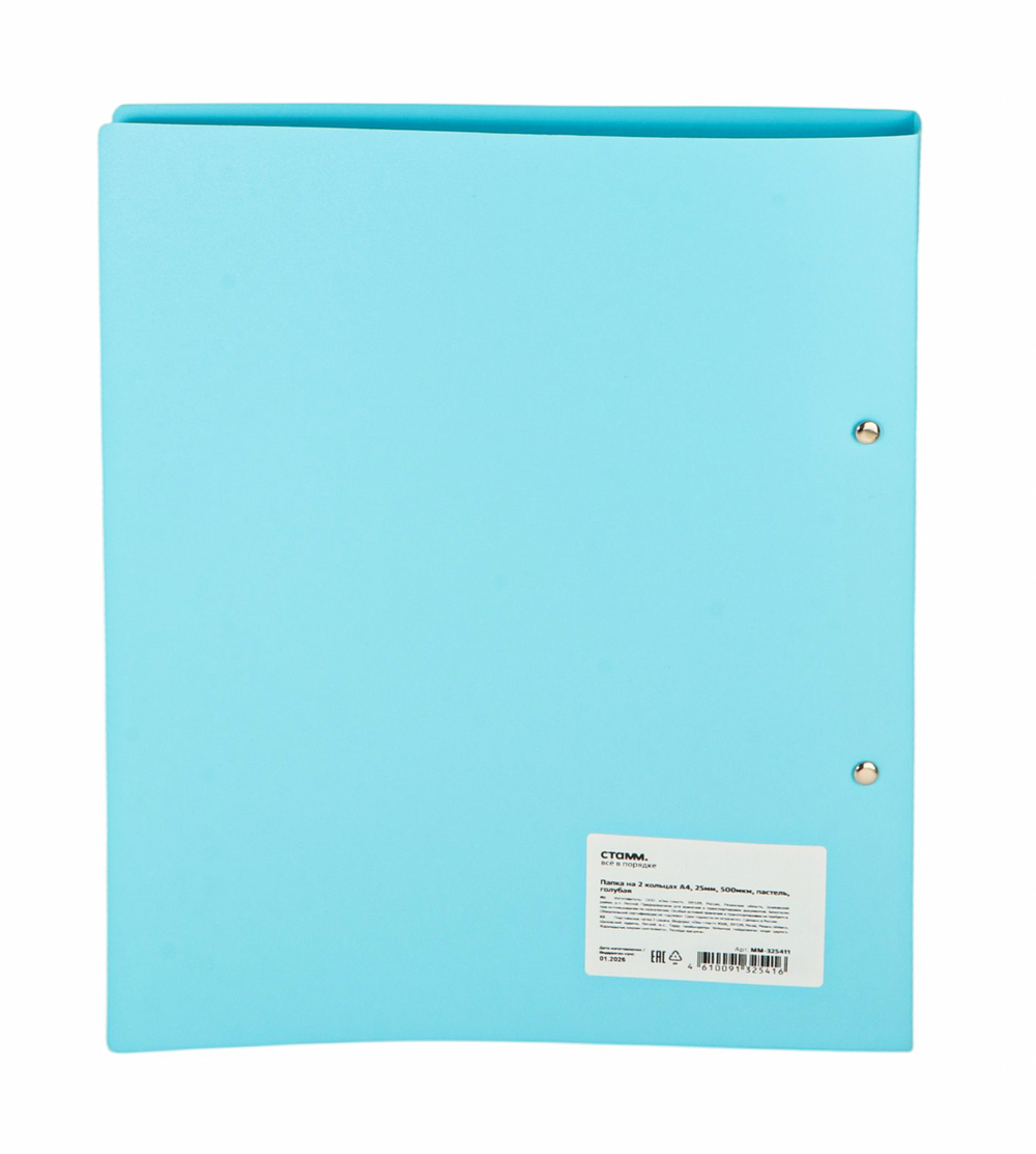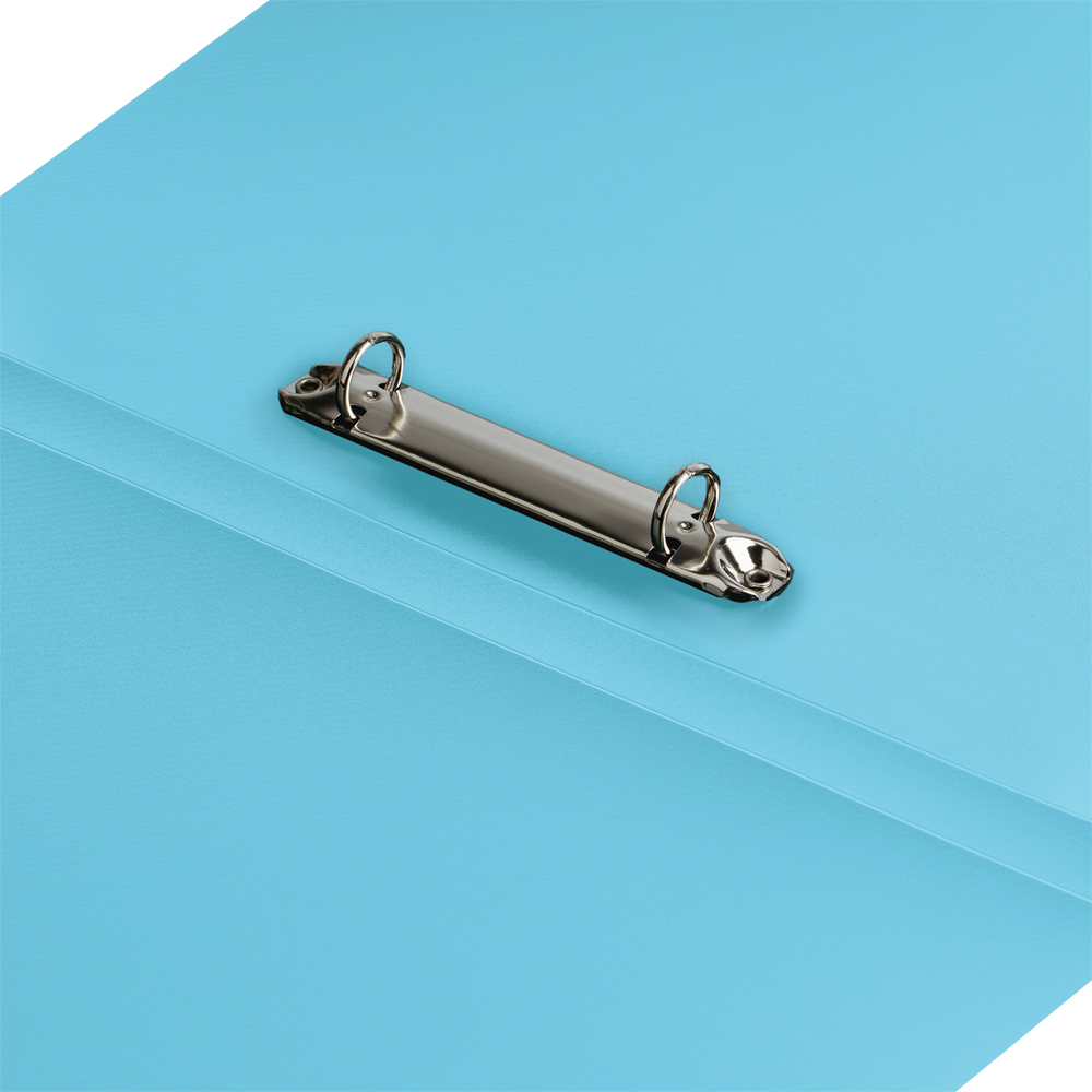Папка на 2 кольцах "СТАММ" предназначена для хранения перфорированных документов формата А4. Цвет папки – пастельный голубой. Изготовлена из качественного полипропилена плотностью 500 мкм с текстурой "песок".