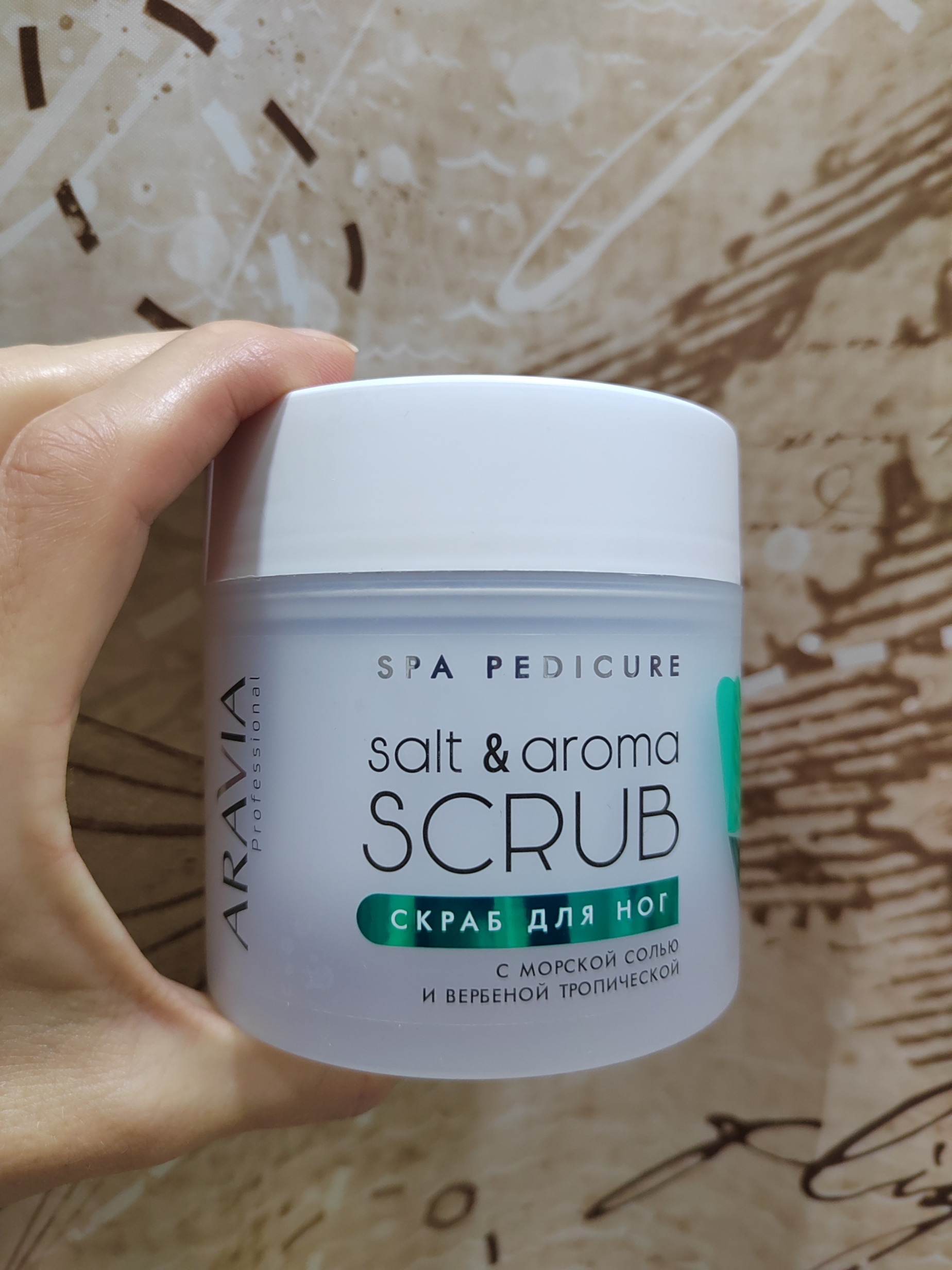 Соляной скраб с маслом тропической вербены и чайного дерева. Предназначен для расслабляющего SPA-педикюра.