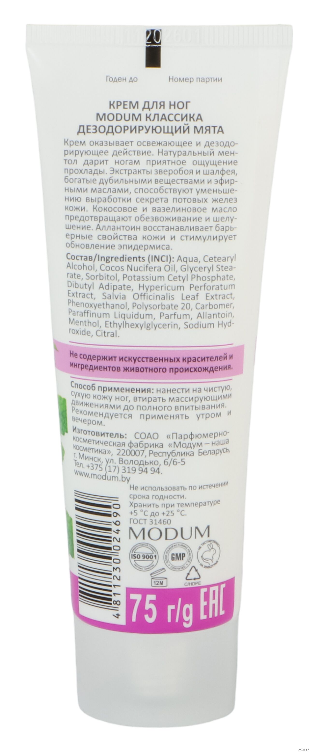 | Изготовитель | СОАО Парфюмерно-косметическая фабрика "Модум - наша косметика", Республика Беларусь, 220007 г. Минск, ул. Володько, 6/6-5 |