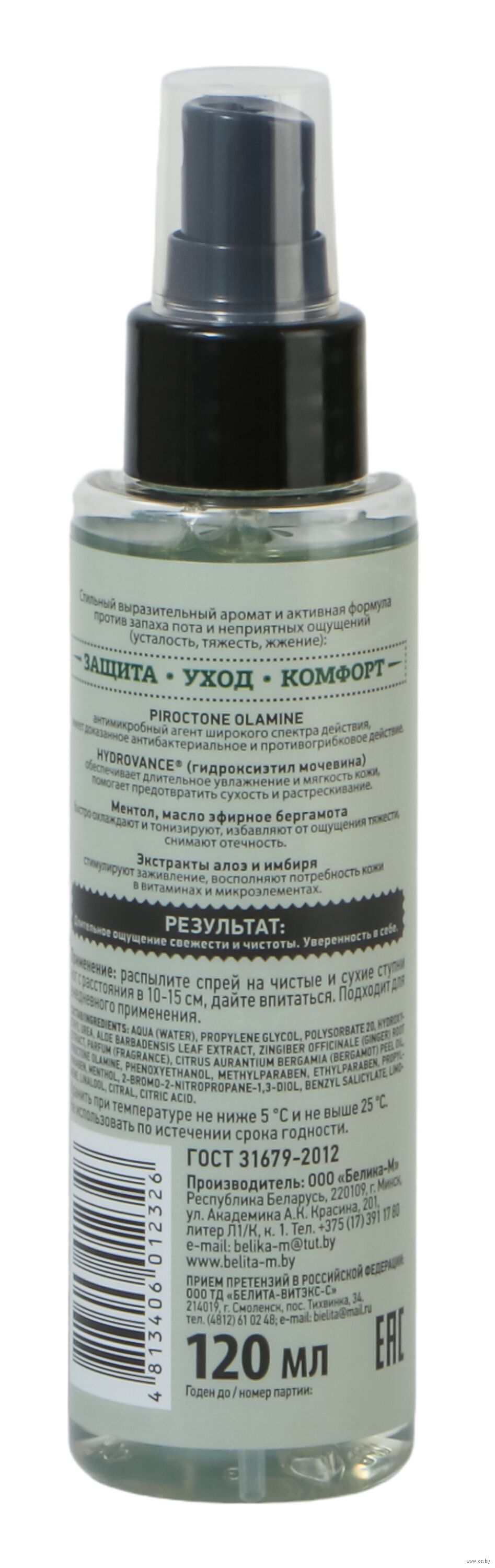 Стильный выразительный аромат и активная формула против запаха пота и неприятных ощущений (усталость, тяжесть, жжение).