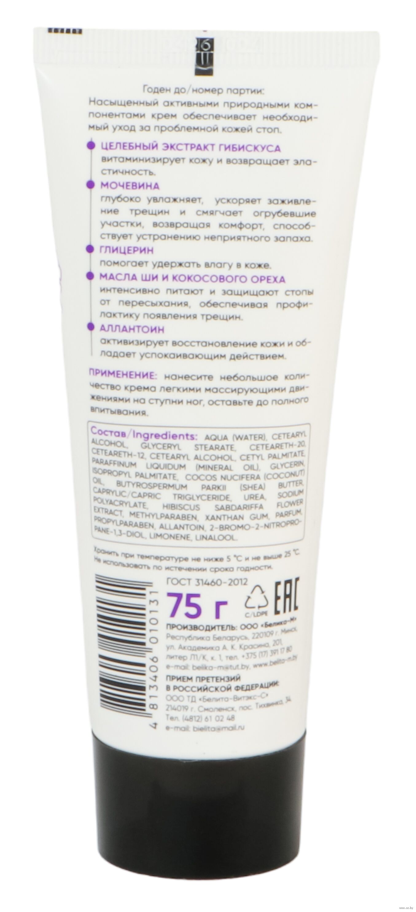 Нанесите небольшое количество крема легкими массирующими движениями на ступни ног, оставьте до полного впитывания.Состав