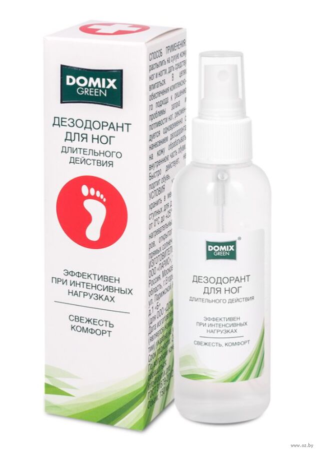 Причина появления специфического запаха – бактерии, появляющиеся на коже ступни и в межпальцевом пространстве при потоотделении. Дезодорант для ног "Domix Green" устраняет причину проблемы – убивает микроорганизмы, не позволяя им размножаться и, тем самым, выделять неприятный запах.