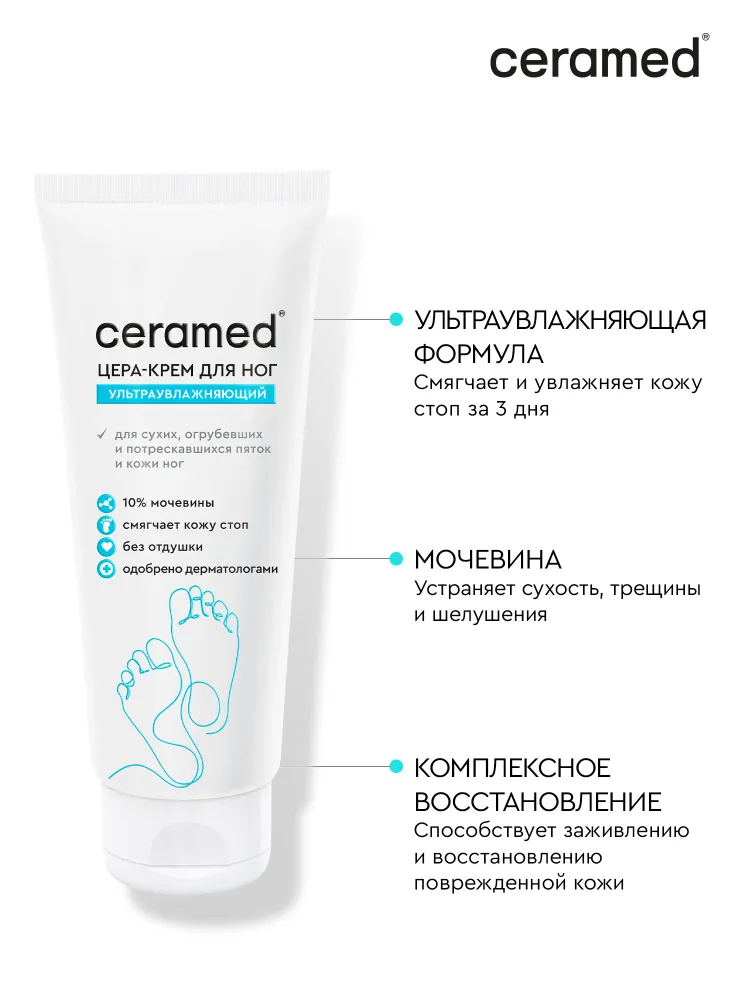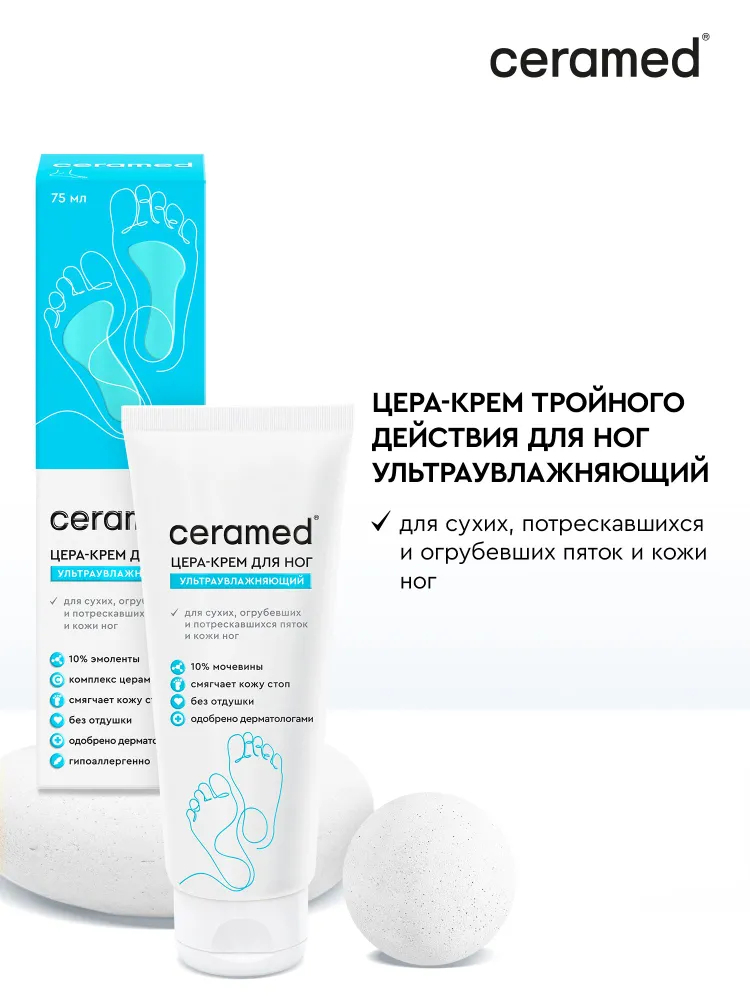 Базовая формула крема способствует глубокому увлажнению и смягчению сухой и потрескавшейся кожи ног. Биосинергия компонентов позволяет цера-крему глубокого увлажнять и интенсивно питать кожу ног, оставляя ее мягкой и увлажненной в течение длительного времени.