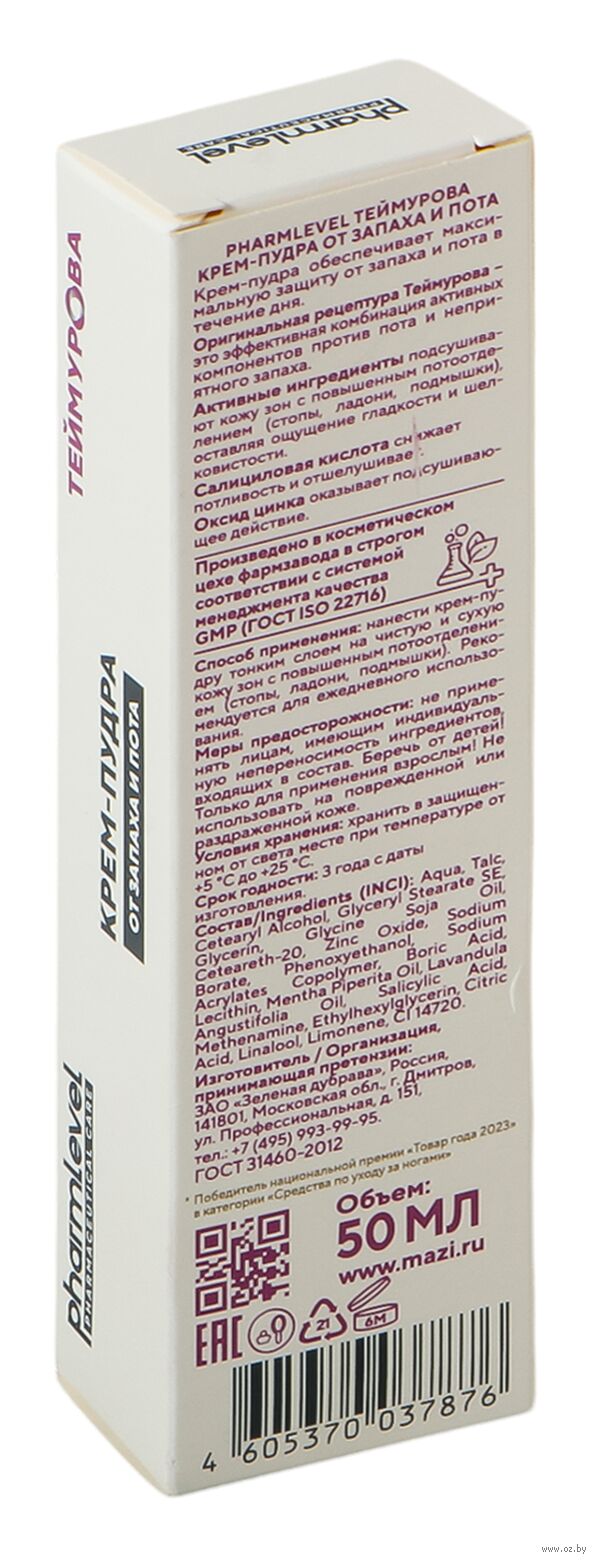 Крем-пудра от запаха и пота "Pharmlevel" (50 мл)
