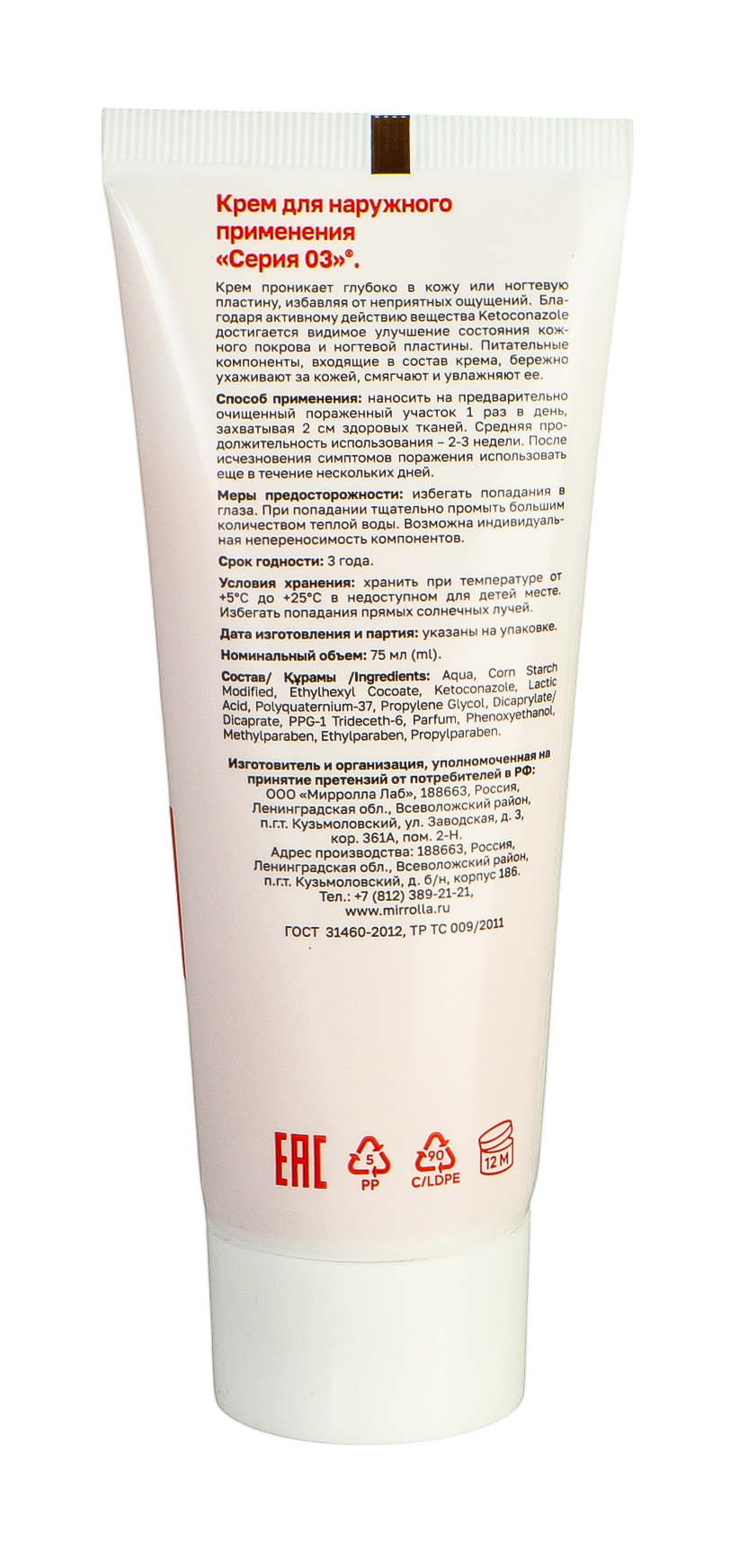 | Упаковка | Туба |