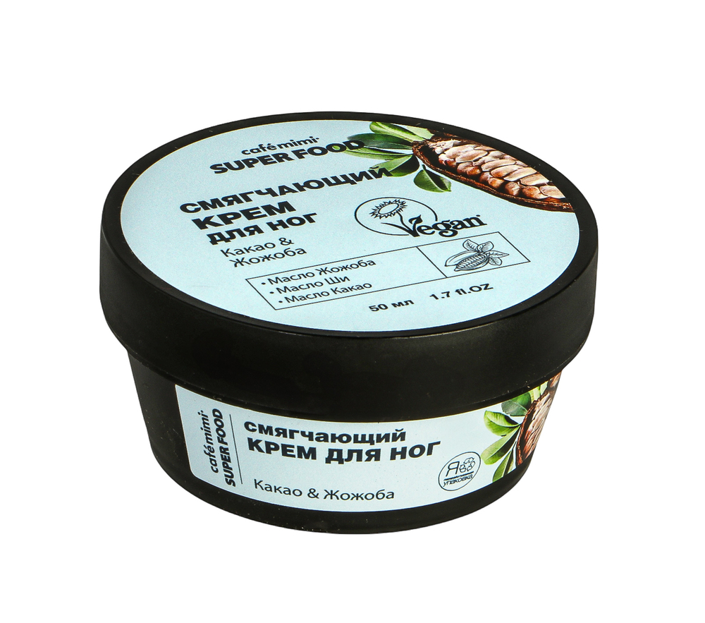 Крем для ног на основе масла Ши, Какао и Жожоба глубоко питает и восстанавливает сухую кожу стоп, увлажняет и смягчает кожу, делая пяточки гладкими и нежными.