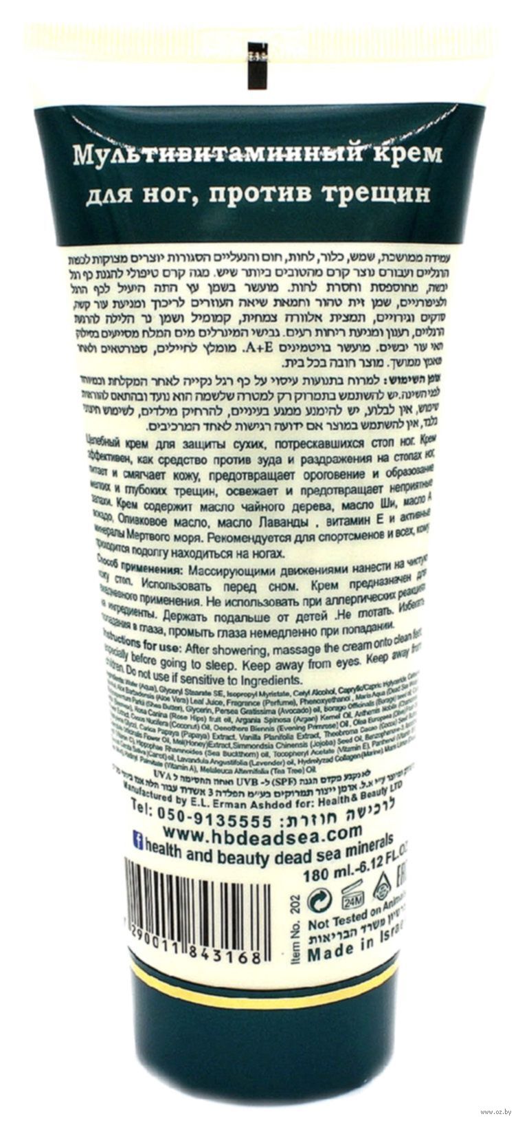 Крем cодержит масло чайного дерева, маслo ши, маслo aвокадо, оливковое маслo, маслo лаванды, витамин Е и активные минералы мертвого моря.