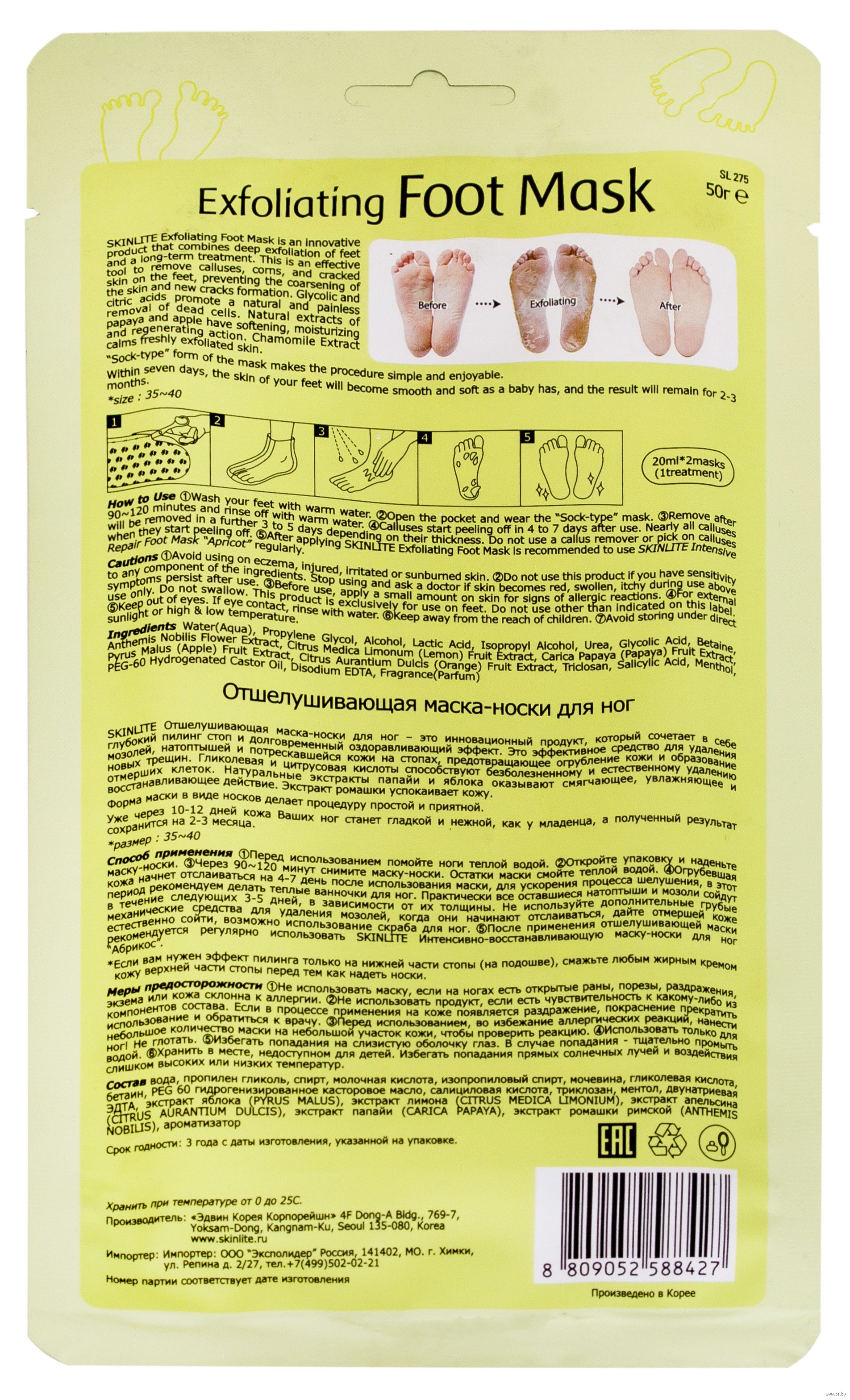 Маска-носки для ног "Отшелушивающая" (1 пара)