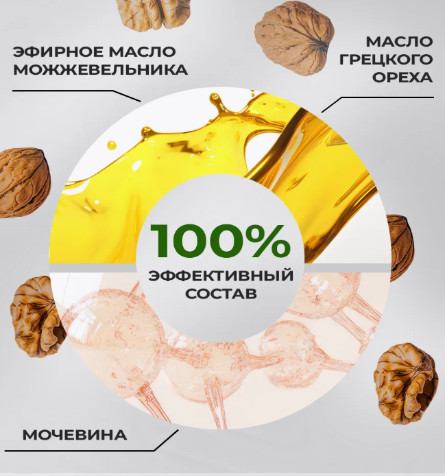 Масло грецкого ореха и мочевина обеспечивают глубокое увлажнение, что особенно важно для сухой кожи ног.
