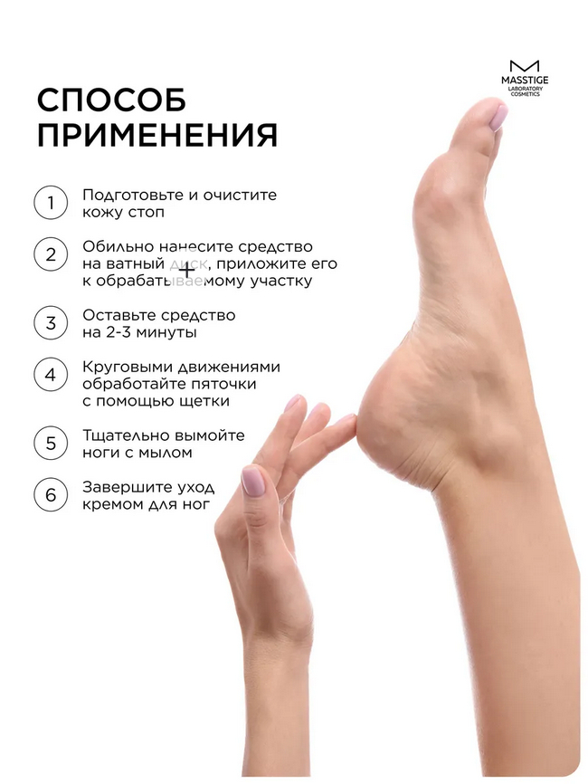 Кератолитик для удаления огрубевшей кожи от бренда Masstige эффективное профессиональное средство для педикюра и ухода за сухой кожей ног и пяток в домашних условиях.