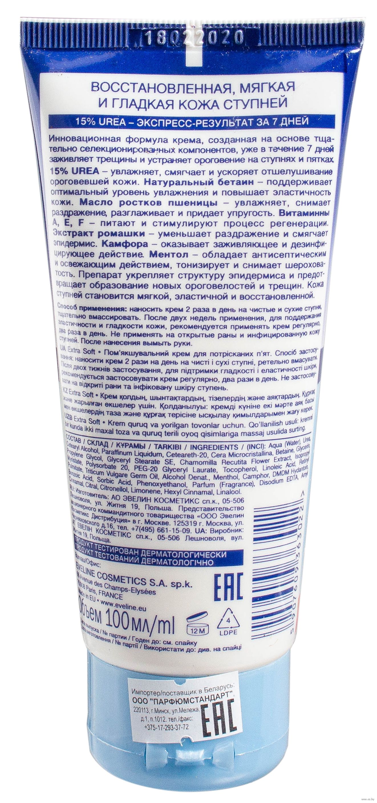 Aqua (Water), Urea, Cetearyl Alcohol, Paraffinum Liquidum, Ceteareth-20, Cera Microcristallina, Betaine, Glycerin, Propylene Glycol, Glyceryl Stearate SE, Chamomilla Recutita Flower Extract, Isopropyl Myristate, Polysorbate 20, PEG-20 Glyceryl Laurate, Tocopherol, Linoleic Acid, Retinyl Palmitate, Triticum Vulgare Germ Oil, Alcohol Denat., Menthol, Camphor, DMDM Hydantoin, Benzoic Acid, Sorbic Acid, Phenoxyethanol, Parfum (Fragrance), Disodium EDTA, Amyl Cinnamal, Citral, Citronellol, Limonene, Hexyl Cinnamal, Linalool.Мы используем файлы cookie для обеспечения удобства работы с сайтом и его контакта с пользователем.