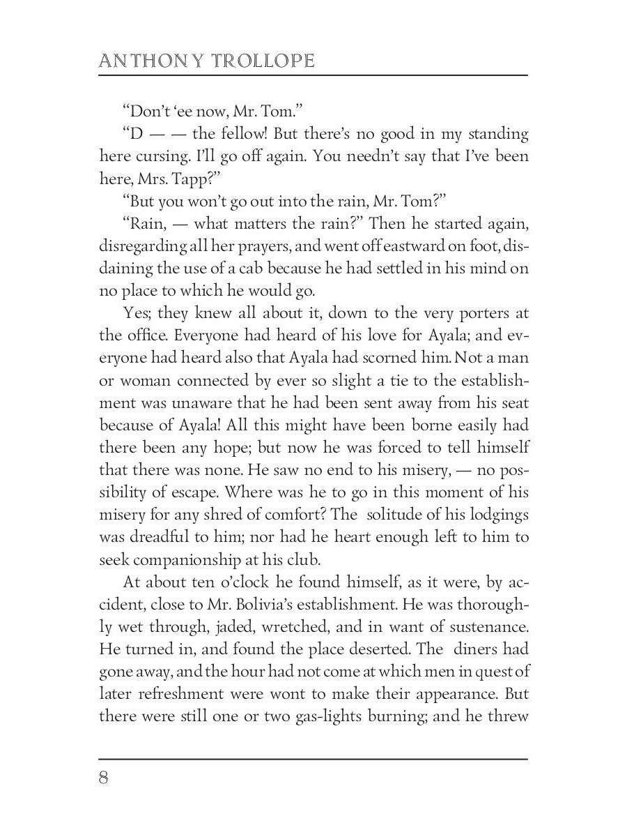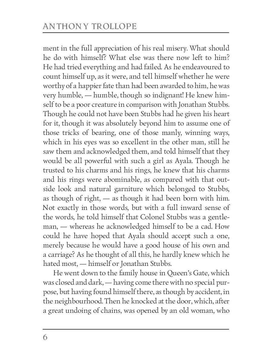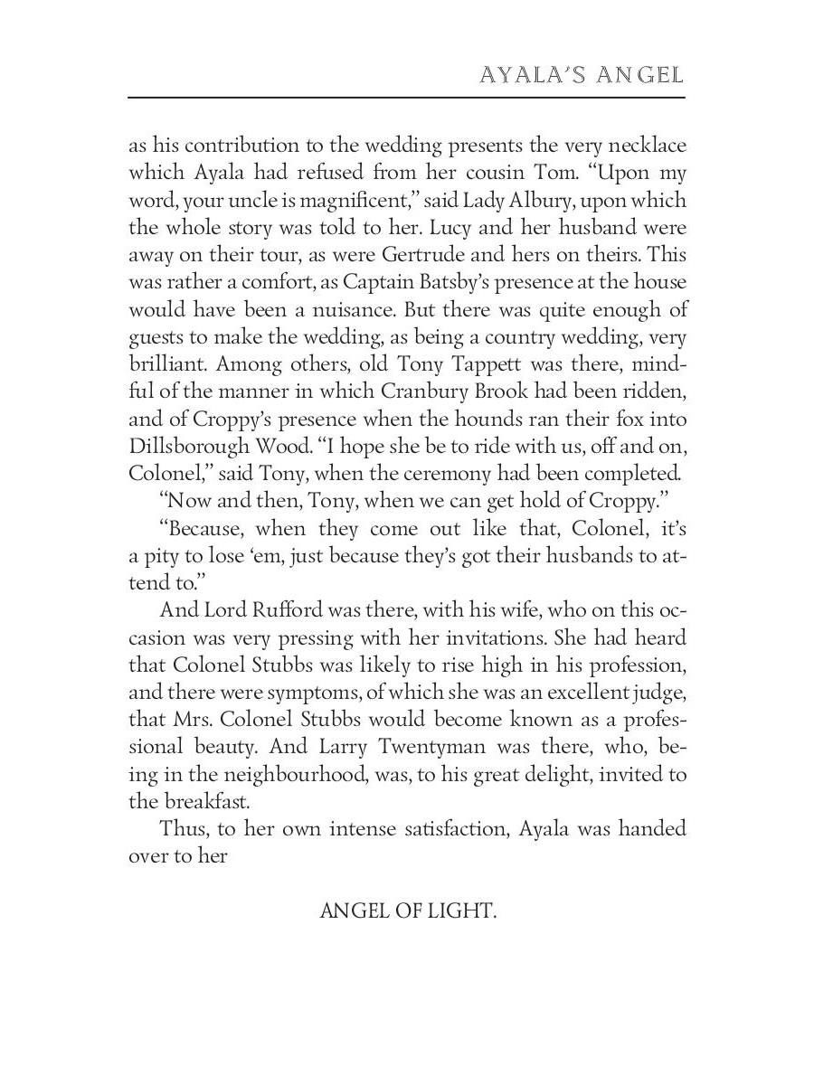 Anthony Trollope (1815-1882) was an English novelist of the Victorian era. Among his best-known works is a series of novels collectively known as the Chronicles of Barsetshire, which revolves around the imaginary county of Barsetshire. "Ayala's Angel" is a novel that focuses on two orphaned sisters, Lucy and Ayala Dormer, Ayala especially, and their trials, with their relatives. It was written as a stand-alone novel rather than as part of a series, though several of the minor characters appear in other novels by Trollope.