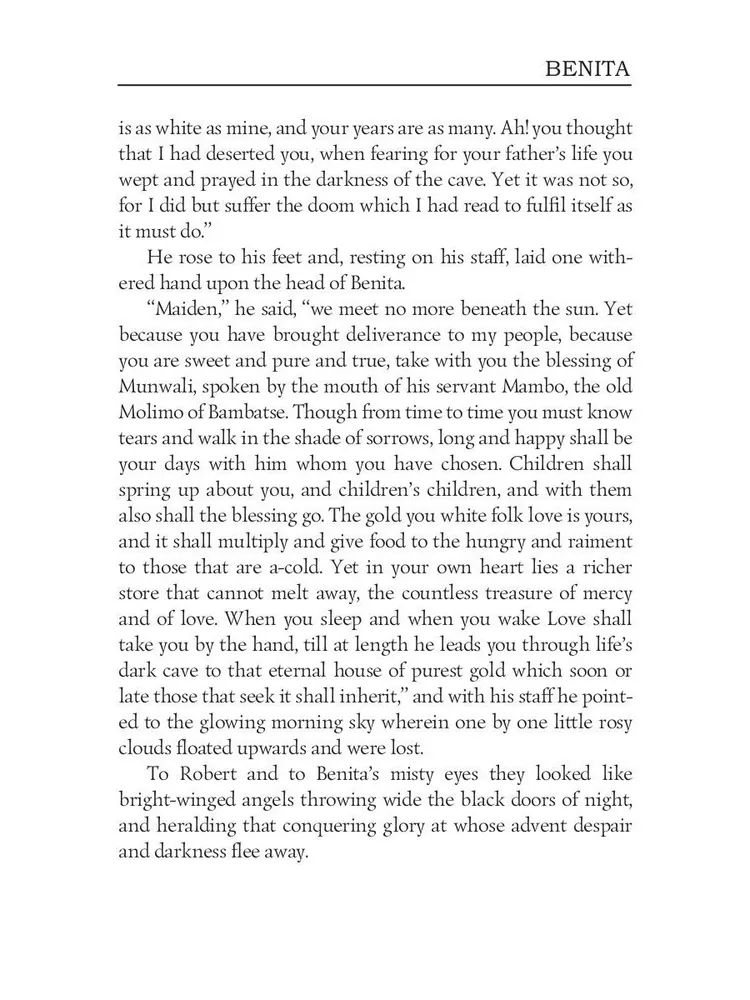 Sir Henry Rider Haggard was an English writer of adventure novels set mostly in Africa, and a founder of the Lost World literary genre. Fair Margaret tells the inspiring story of a beautiful English maiden named Margaret, who faces hardship during the opening phases of the Spanish Inquisition in the late 1400's. As Margaret and her family struggle to live in peace, they soon find themselves in the midst of a series of perilous adventures. Benita bears all the hallmarks of a classic Haggard's story. Readers will be pleased to discover an adventure of the supernatural, lost and hidden peoples and stupendous treasure that is a compelling "page turner" to its conclusion.