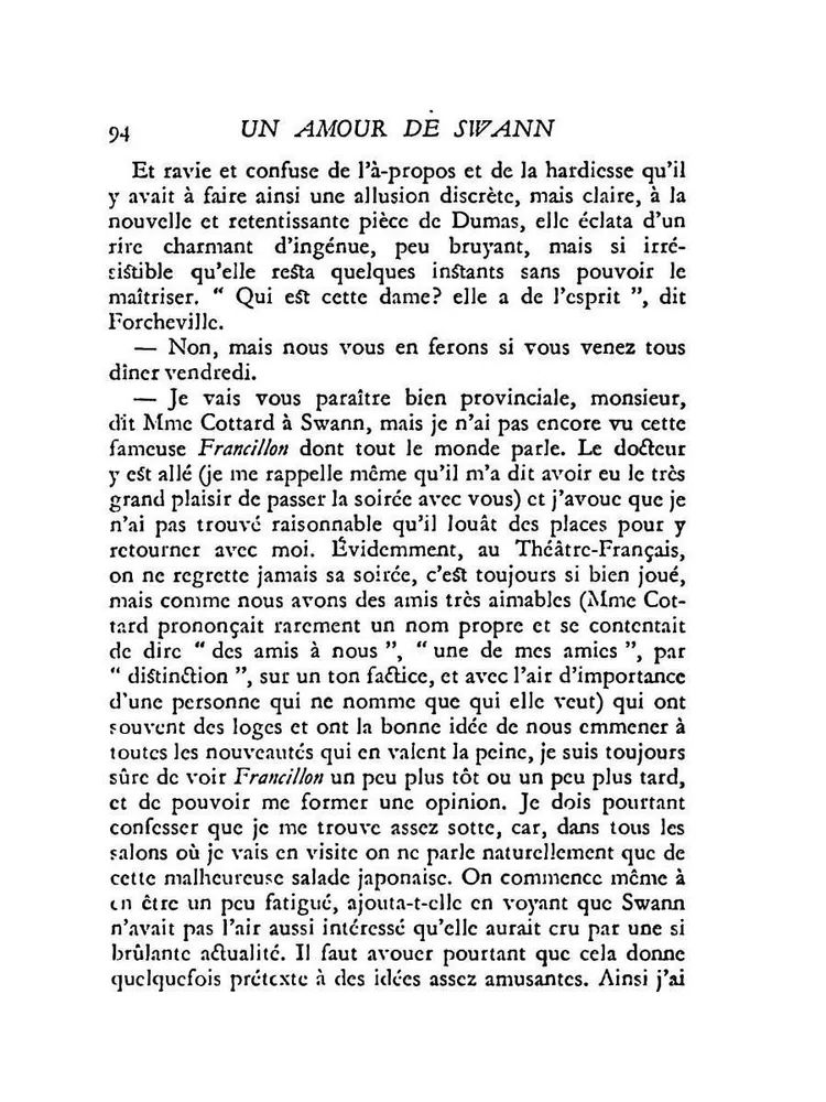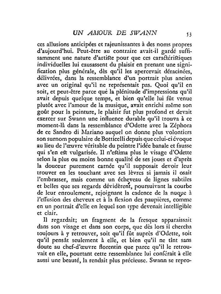 "Любовь Свана" – это вторая часть из цикла "В поисках утраченного времени". Сюжет разворачивается в Париже 1880-го года. Эта впечатляющая история молодого денди о любви и разочаровании лёгким пунктиром намечает дальнейшие пути, по которым будет развиваться его судьба.