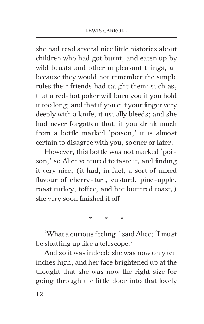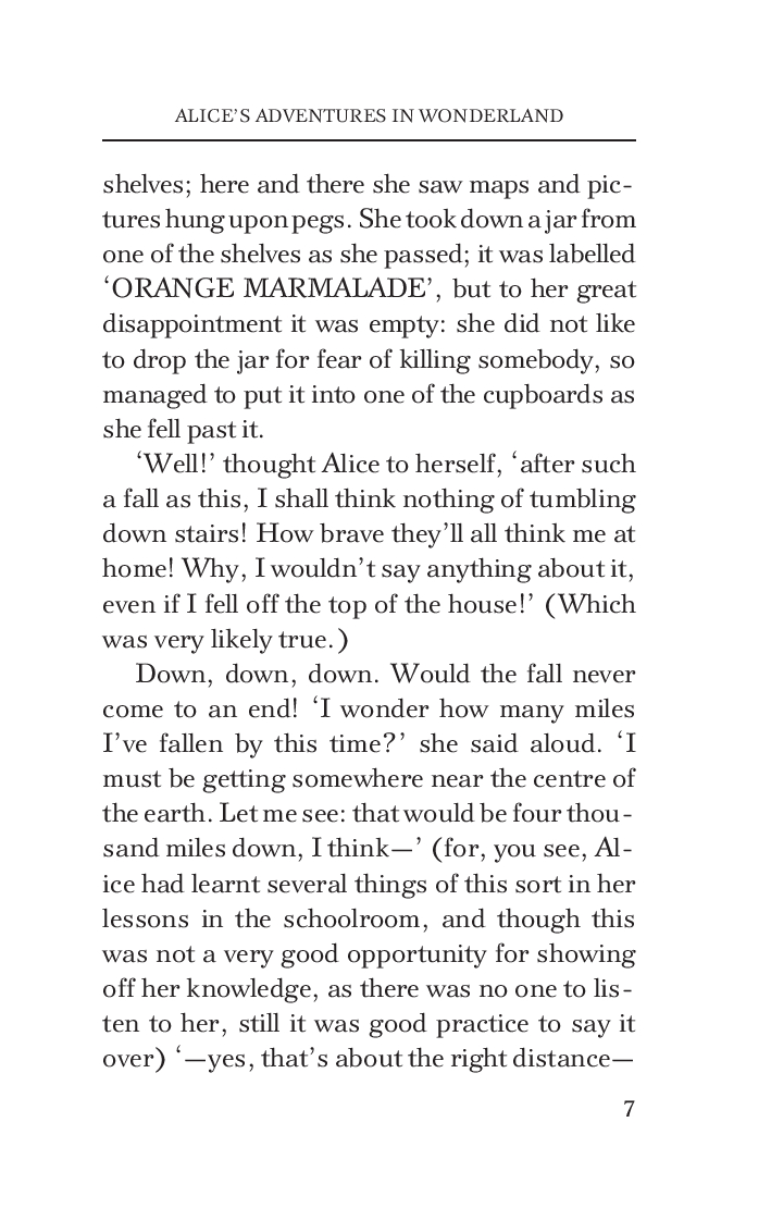 So begins the tale of Alice, following a curious White Rabbit down a rabbit-hole and falling into Wonderland. A fantastical place, where nothing is quite as it seems: animals talk, nonsensical characters confuse, Mad Hatter's throw tea parties and the Queen plays croquet. Alice's attempts to find her way home become increasingly bizarre, infuriating and amazing in turn. A beloved classic, Alices Adventures in Wonderland has continued to delight readers, young and old for over a century.